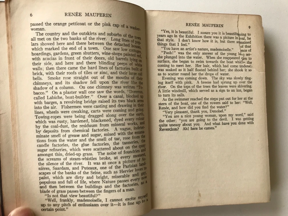 RENEE MAUPERIN By E. & J. de Goncourt Circa 1920's #76/234 pages The authors' object has been to depict a phrase of contemporary middle-class life.The heroine is Renee, the most prominent person of the story. lsdp ********** We have listed a number of collectible items this week. Please visit our other auctions for more great finds to add into your library! Please view all of the photos for additional detail on this items' condition, and feel free to ask us any questions. Thank you for considering a bid, and best of luck to you in the auction should you choose to participate! Our customer's satisfaction is our top priority. In the event you experience any problems with your order, please contact us prior to leaving a negative or neutral feedback and we'll be sure to offer a speedy resolution to any issues that may arise. PAYMENTS o Paypal is the only method of Payment we accept. No exceptions can be made. o Payment must be received within 7 days of the auction's end. o Items left unpaid for more than 7 days are eligible to be relisted or have an unpaid item claim filed. SHIPPING o Please be aware of our shipping charges prior to placing a bid. o We do offer combined shipping. Please email after the auction's end requesting a revised / combined invoice. o Requests for combined shipping will be handled on a case by case basis. It may not be possible to combine certain larger items if we feel it may jeopardize a safe arrival. o Any item sold is eligible for local pick up at our retail store Mon., Tues., Thurs. & Friday between the hours of 10 a.m. til 12 pm. Please note that payment must be cleared online prior to pick up, as we are unable to accept cash or process payment at our location.