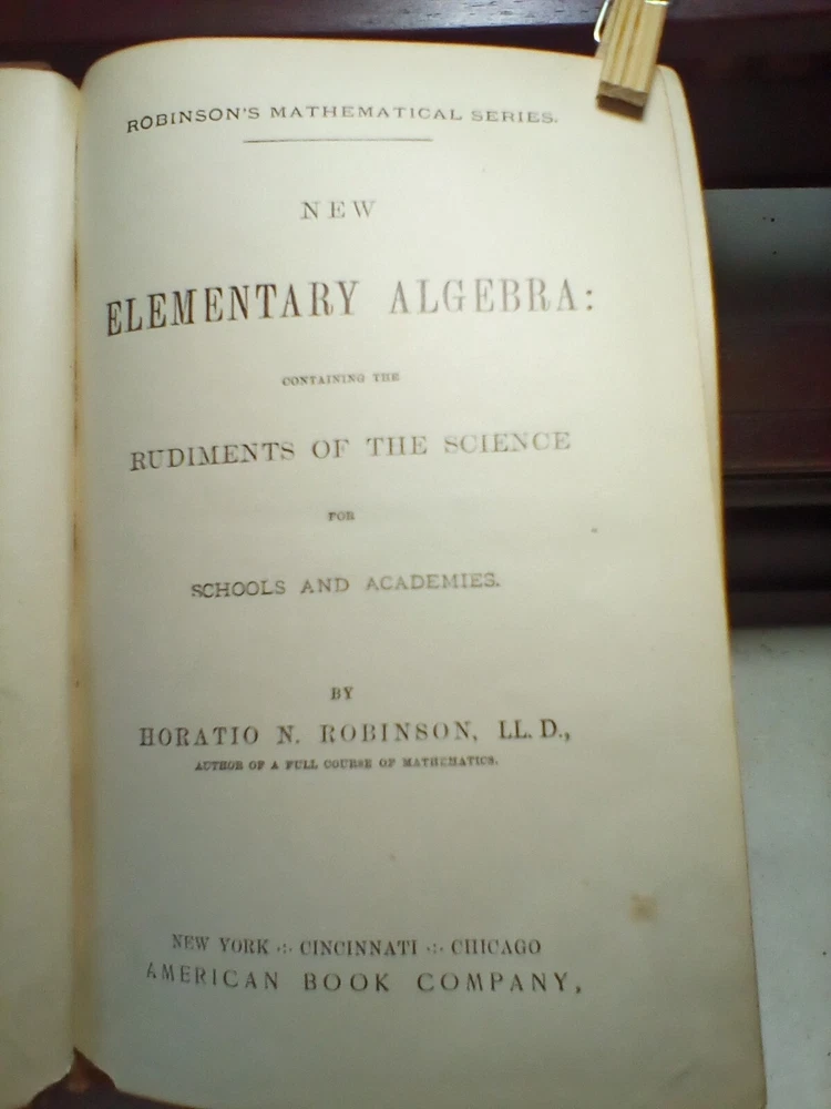 This is a rare and valuable book from Horatio N. Robinson's Mathematical Series. The book is bound in leather and was published by American Book Co. in 1859. It covers the topic of mathematics and is a great addition to any collection of antiquarian and collectible books. The book is on the subject of science and medicine and is sure to be a treasured possession for anyone interested in these fields. Don't miss out on the opportunity to own this piece of history! Some bumps and leather erosion but overall solid book.