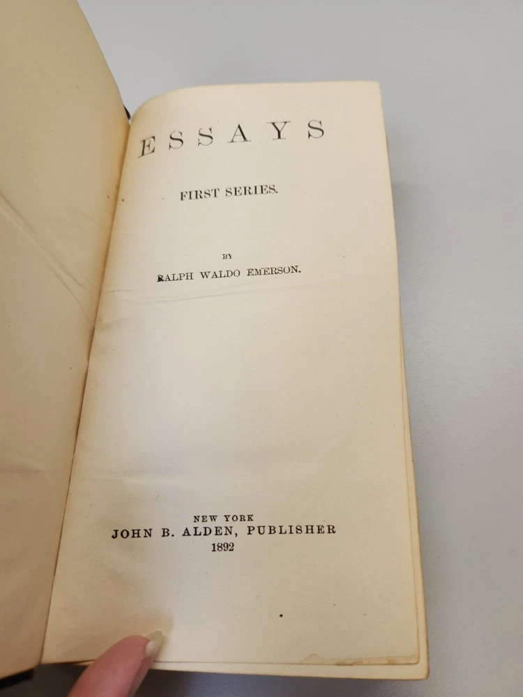 Immerse yourself in the transcendental world of Ralph Waldo Emerson with this complete series of essays and speeches. This original seal edition is a must-have for any literature and fiction collector. The leather binding and special attributes make this book a unique addition to your collection. Discover Emerson's thoughts on various topics such as nature, self-reliance, and society without the need for personalization or a signature. This publication is a true gem for any book enthusiast. Add this to your antiquarian and collectible collection today. Sold As Is – Please see photos for condition. Please contact us with any questions or concerns you have about your purchase.
