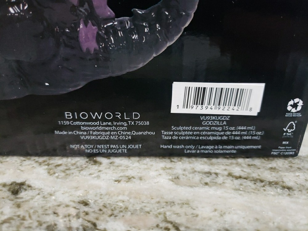 Rare Bioworld TOHO Godzilla Sculpted Ceramic Mug Cup 15 oz Monster Dinosaur Please review pictures closely as no returns are accepted. What you see is what you will receive! Has one small rough spot on the handle where it looks like the gloss didn't quite cover but otherwise in unused condition. In original box. ________________________________________________________________________ The item is fresh from an estate auction sale or farm find, therefore the item has been used - there are possible paint rub marks, flea bites or dust/dirt. Please see pictures and item description for condition because returns are not accepted. We are not professional collectors so please make your own judgment on condition. Shipping will be our actual cost and we are happy to combine items so please alert us if you plan purchasing more. Customs or additional taxes are the responsibility of the purchaser. We strive for nothing but five-star service and appreciate your feedback so please alert us with any concerns.