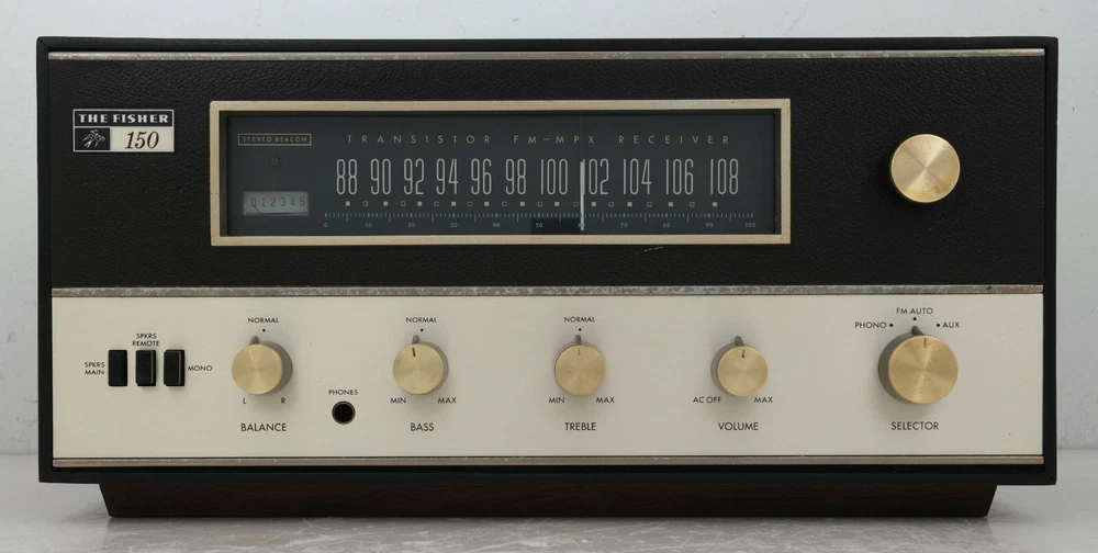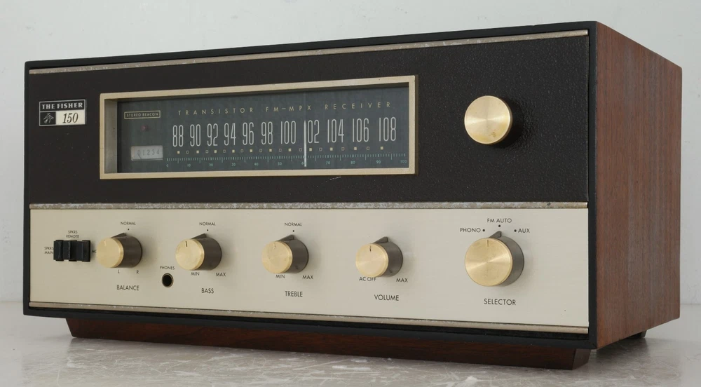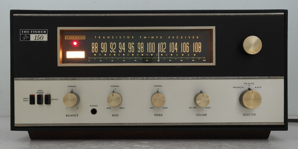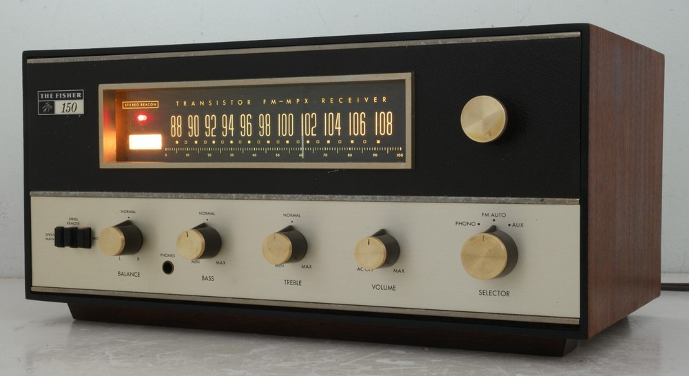 Rare Fisher 150 FM MPX Receiver Up for sale is a Rare Fisher 150 FM MPX Receiver. As the photos show, this is in good condition for its age. Since the sound was not coming out properly from one channel of the receiver, I checked and found that the capacitors in the tone control amplifier were defective and replaced. After replacing them, the aux and phono are working normally, but when FM is selected, the sound of the right channel is quieter than the sound of the left channel. It can be adjusted with the balance knob, but I think the FM section needs service. FM reception is good even without an antenna. Therefore, it is sold on an "AS-IS" condition. Please look at all the pictures for an over all condition, before bidding. All items are offered for sale locally therefore listings may end without notice ( CraigsList-Princeton ). What you see is exactly what you get. Please see the photos for condition details and judge for yourself. All items are sold in the condition shown in photos and "as is" condition, with no warranties. If you have any questions please email me. No returns please! Shipping to Continental United States Only (48 States). Thank You for looking, and good luck with your bids!!!
