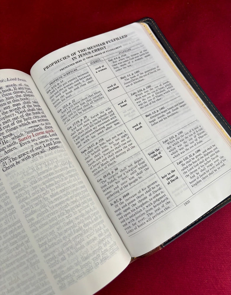 Beautiful Bible in perfect condition. Great seller. USPS was slow to deliver, but that was not the fault of the seller as it was shipped promptly. Very pleased with my purchase and I highly recommend!