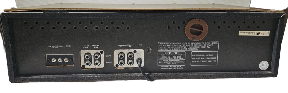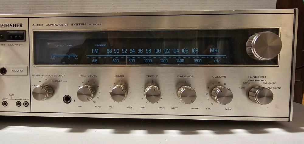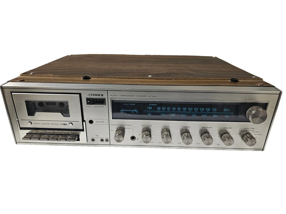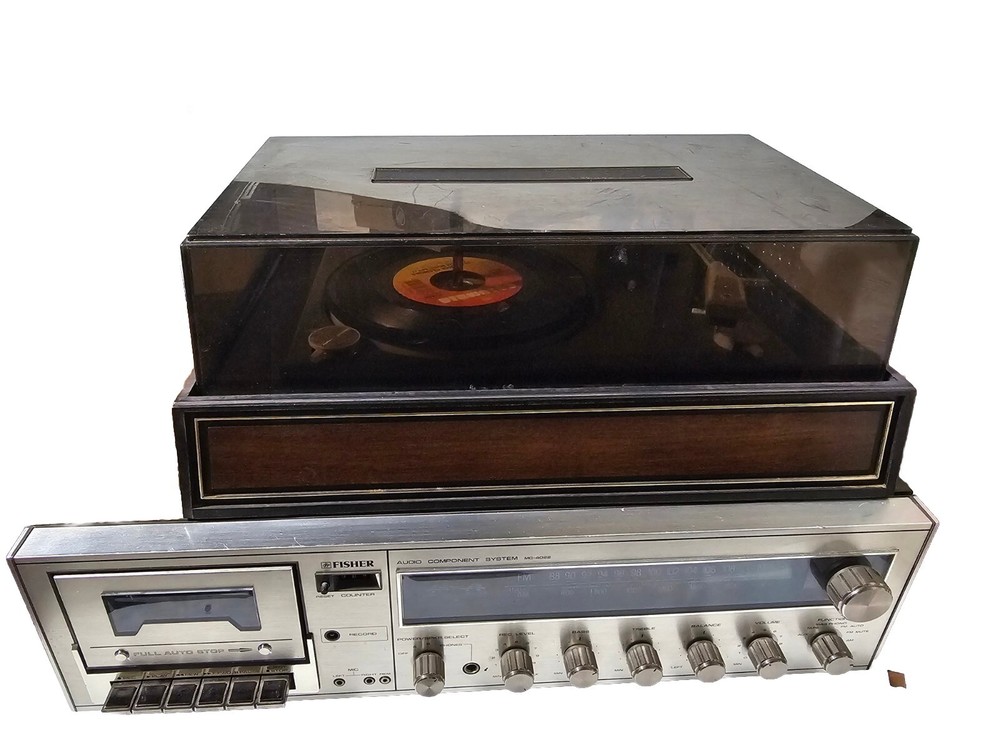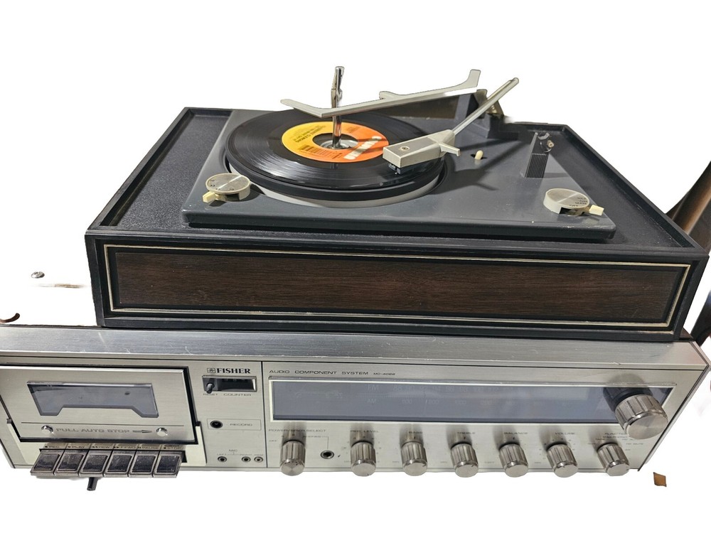 Very rare unit in all working conditions from 70''s. Tested, and everything works fine. Please look at the tape counter and record in the photos. Detachable Turntable and works . It is made in the U.S.A. with Japanese components. Dimensions are; Width - 21" Depth -15" and "Height -15" This vintage Fisher MC-4022 audio component system is a rare find for any audio enthusiast from 70's.. With its classic design and top-of-the-line performance, this system is sure to impress. The brand Fisher is known for their high-quality audio equipment, and this model is no exception. Featuring a range of impressive aspects, including its vintage design and vintage electronics, this system is perfect for collectors and anyone looking to add a unique touch to their audio setup. The model number Fisher MC-4022 is a true gem for those who appreciate vintage audio and video equipment. Don't miss out on the opportunity to own this rare piece of history.