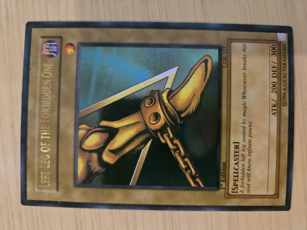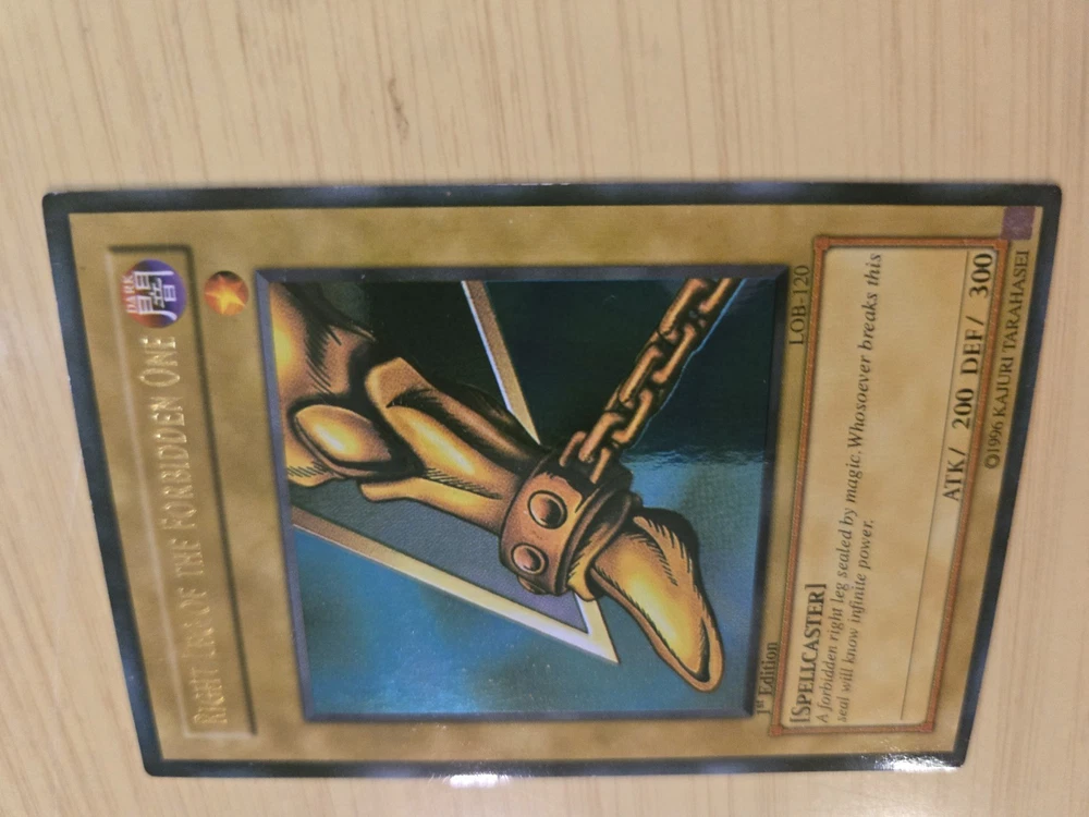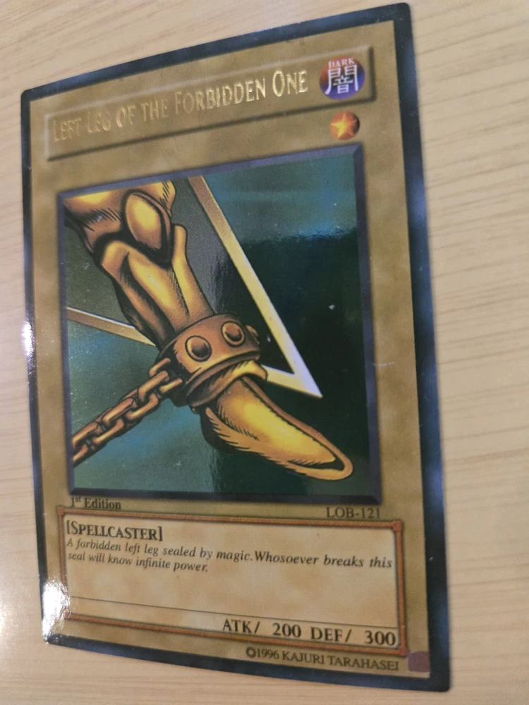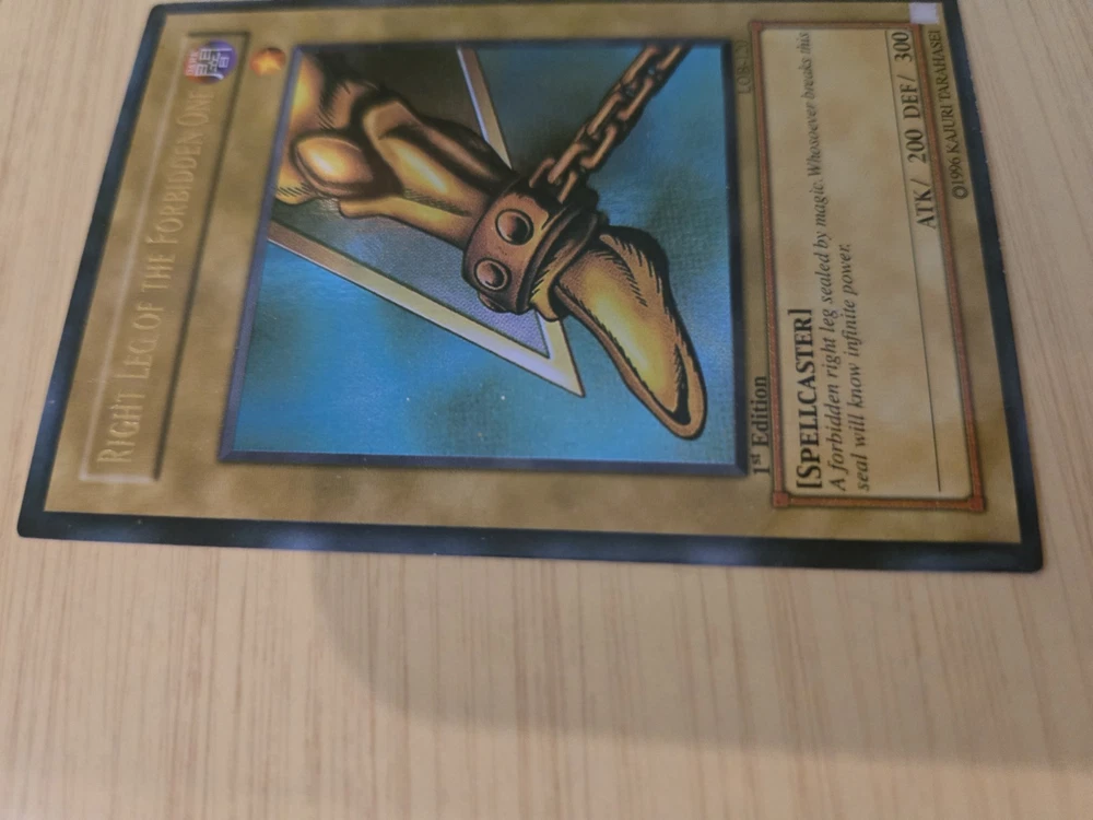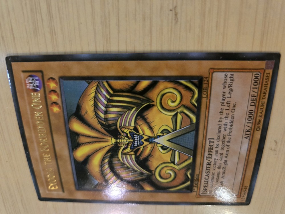 This product is a rare Yu-Gi-Oh! Exodia the Forbidden One card from the LOB set, with card numbers LOB-120 through LOB-124. It is a 1st edition set and is considered ultra rare. The card is in English, manufactured by Konami, and of Japanese card size. It is in excellent condition, having been lightly played. This sought-after collectible is ideal for fans of the Yu-Gi-Oh! TCG and card game collectors looking to add a valuable and unique piece to their collection. Please see pictures above and email if you have any questions.