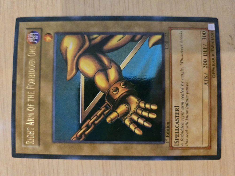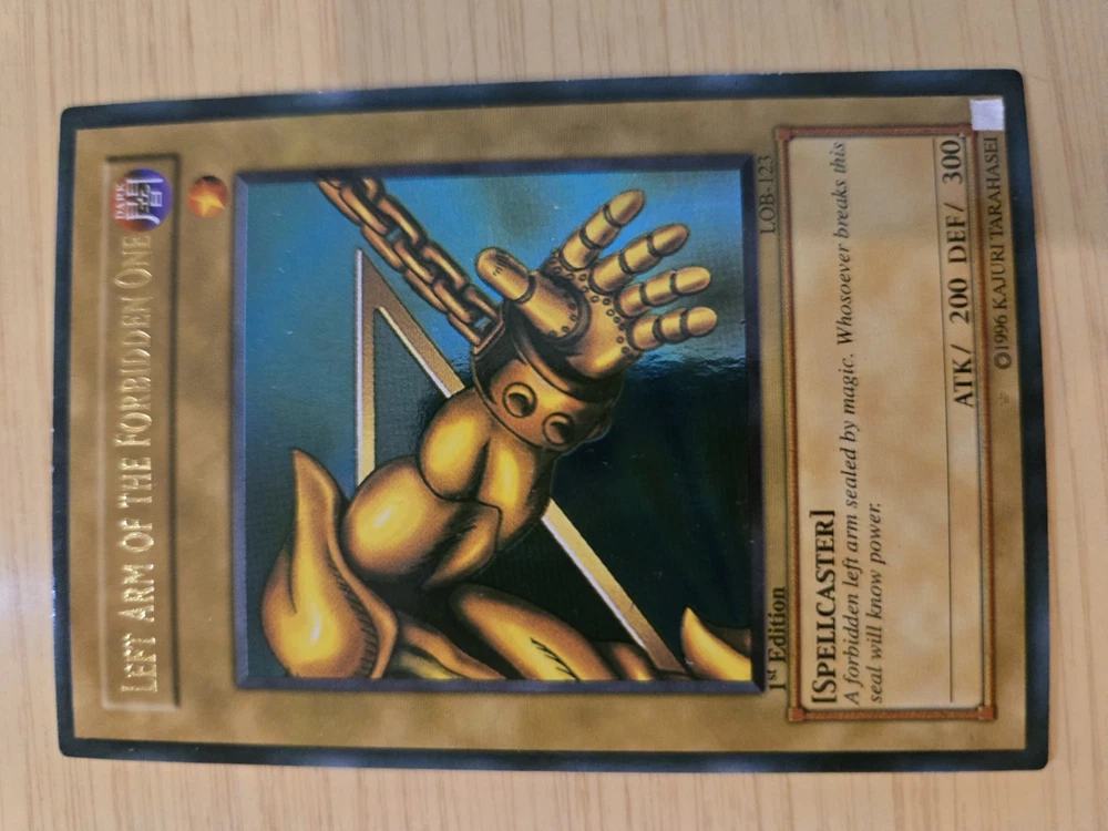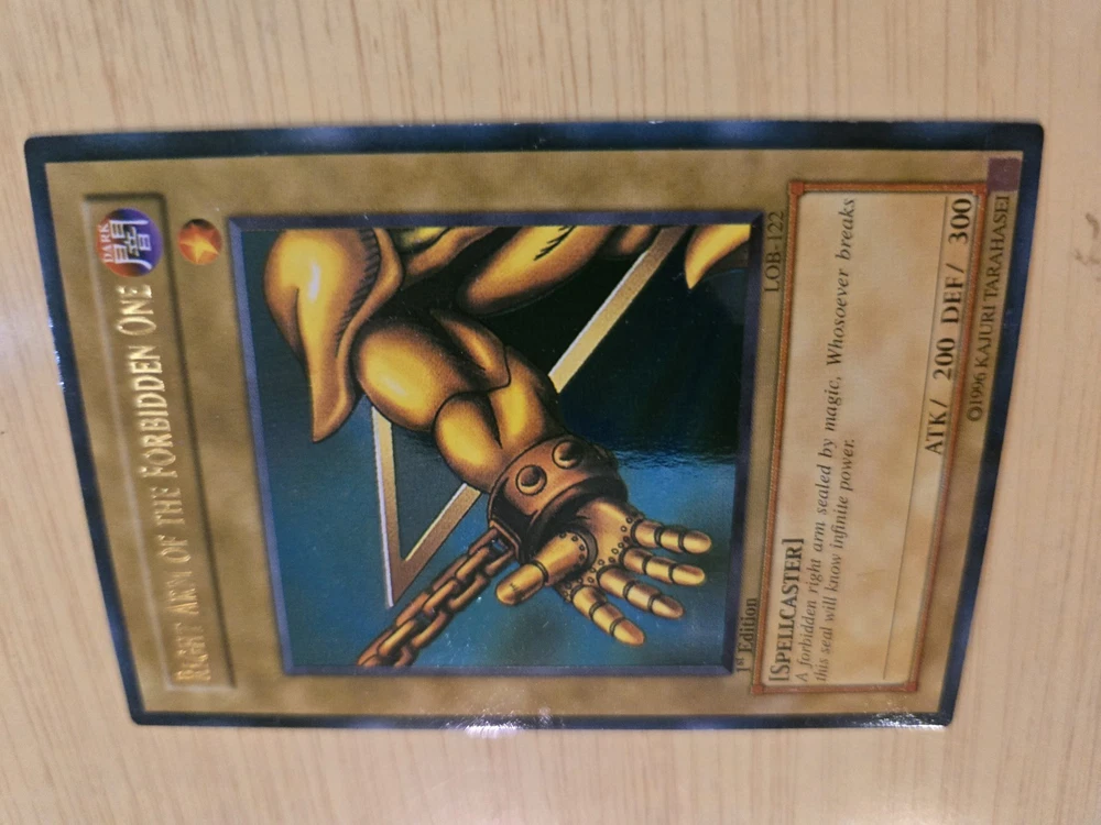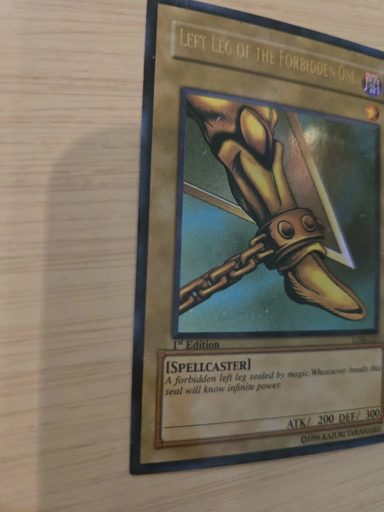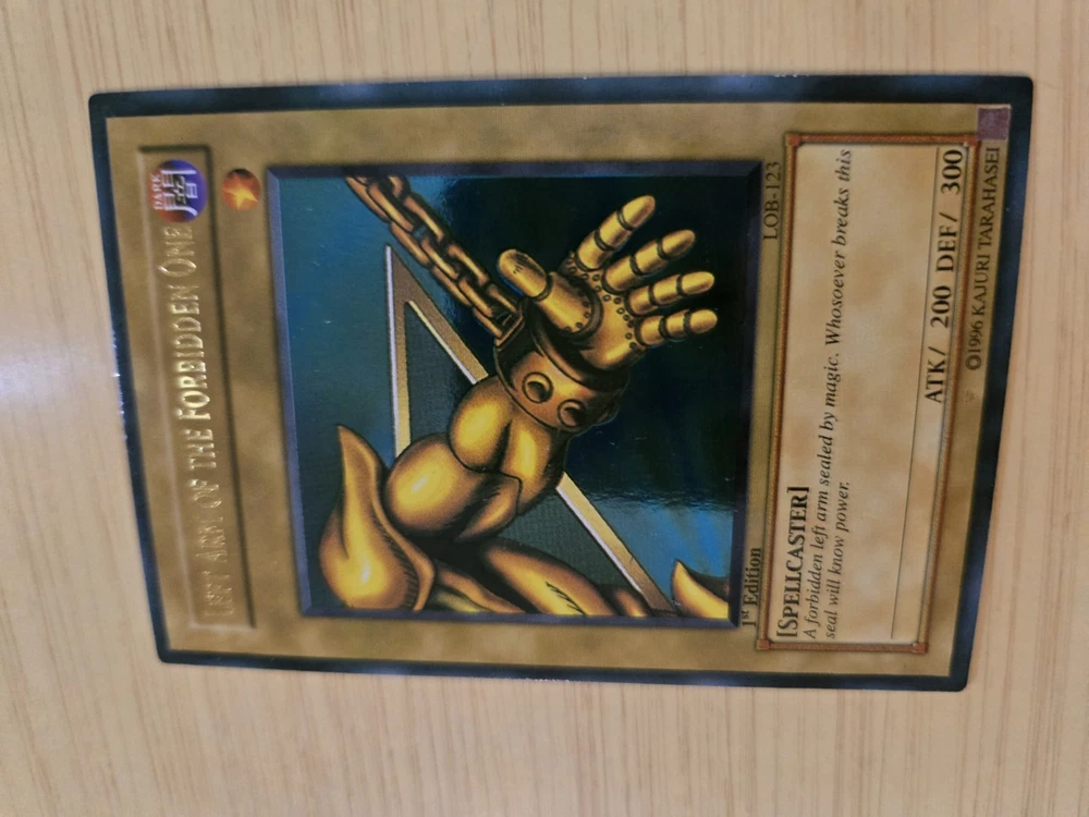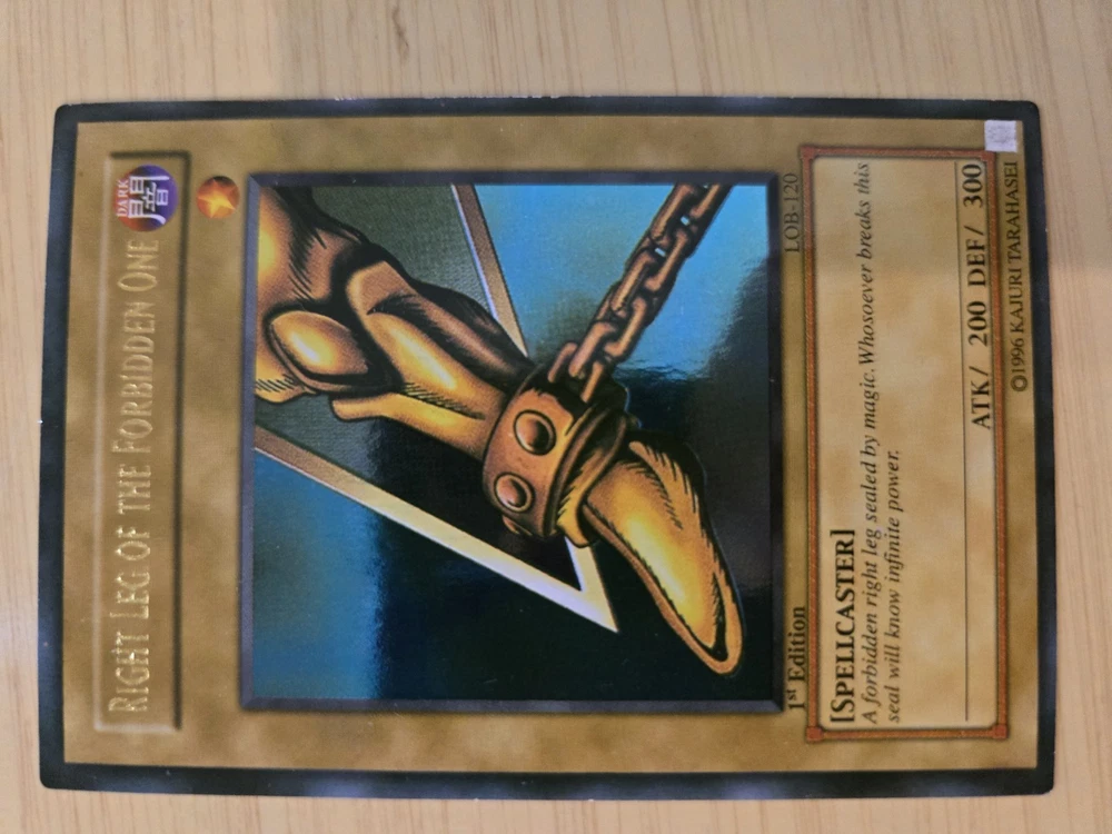 This product is a rare Yu-Gi-Oh! Exodia the Forbidden One card from the LOB set, with card numbers LOB-120 through LOB-124. It is a 1st edition set and is considered ultra rare. The card is in English, manufactured by Konami, and of Japanese card size. It is in excellent condition, having been lightly played. This sought-after collectible is ideal for fans of the Yu-Gi-Oh! TCG and card game collectors looking to add a valuable and unique piece to their collection. Please see pictures above and email if you have any questions.