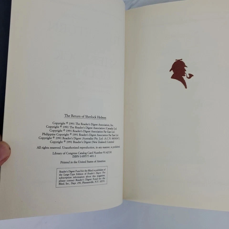 Two books appear unread. The Return of Sherlock Holmes has a couple of pages with small damage from page holder. Please see photos.