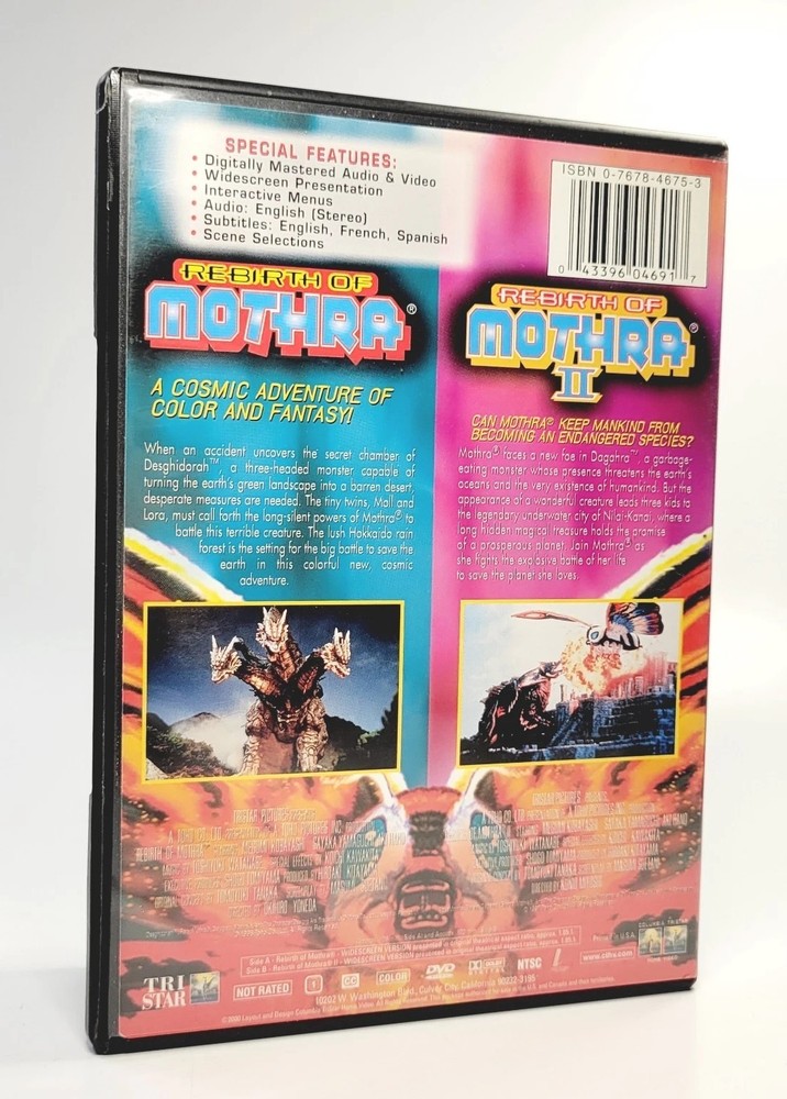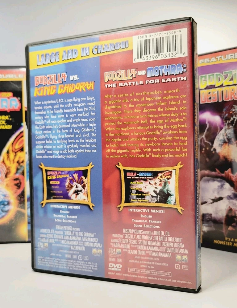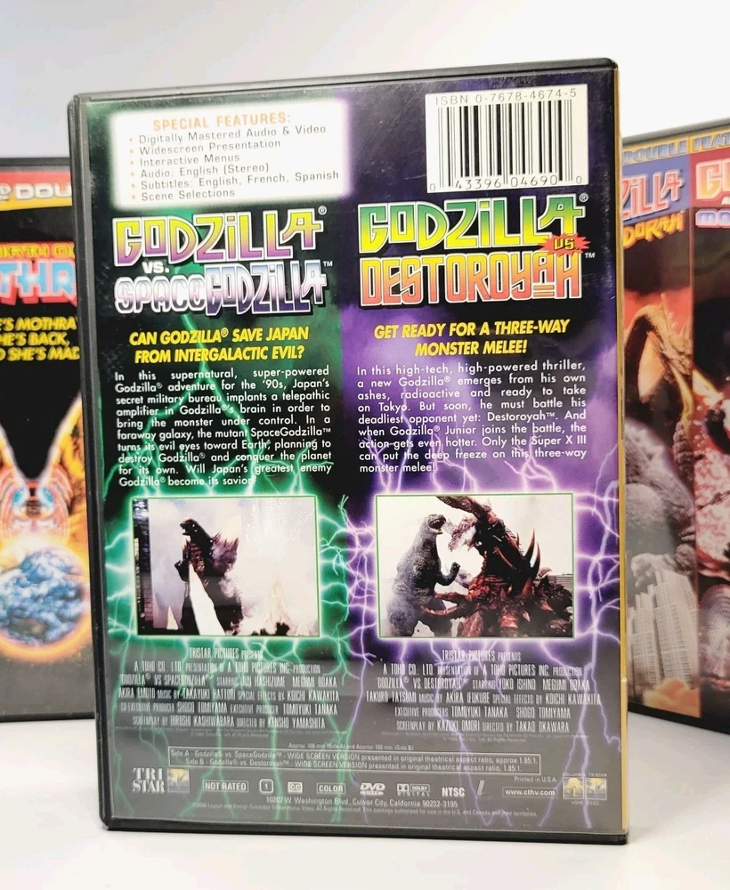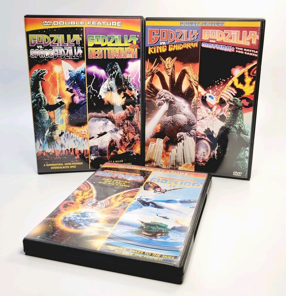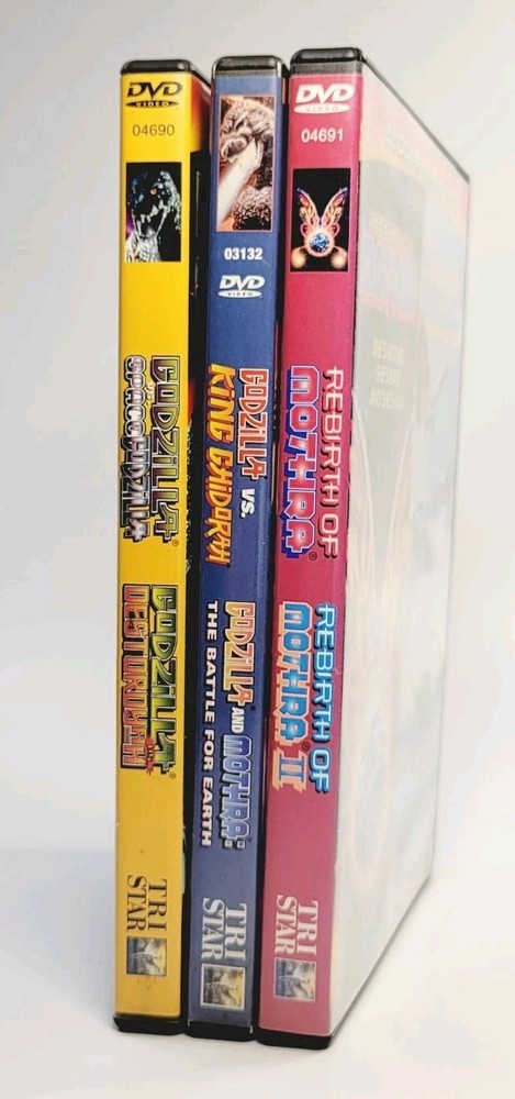 Rebirth of Mothra I & II, Godzilla vs SpaceGodzilla, Godzilla vs King Ghidorah Lot of 3 Double Feature DVD, 2000, Tri Star Release with Inserts. Condition is Very Good/ Great with light wear/ no major scuffs or scratches on discs/ Near New (See Pictures, as depicted) tested working condition with no stickers non-rental. Case and Artwork are in great shape with light wear, clean smoke-free. Shipping is free with great protection and tracking information provided. Message me with any questions. All items for sale are authentic, buy with confidence. Thank you
