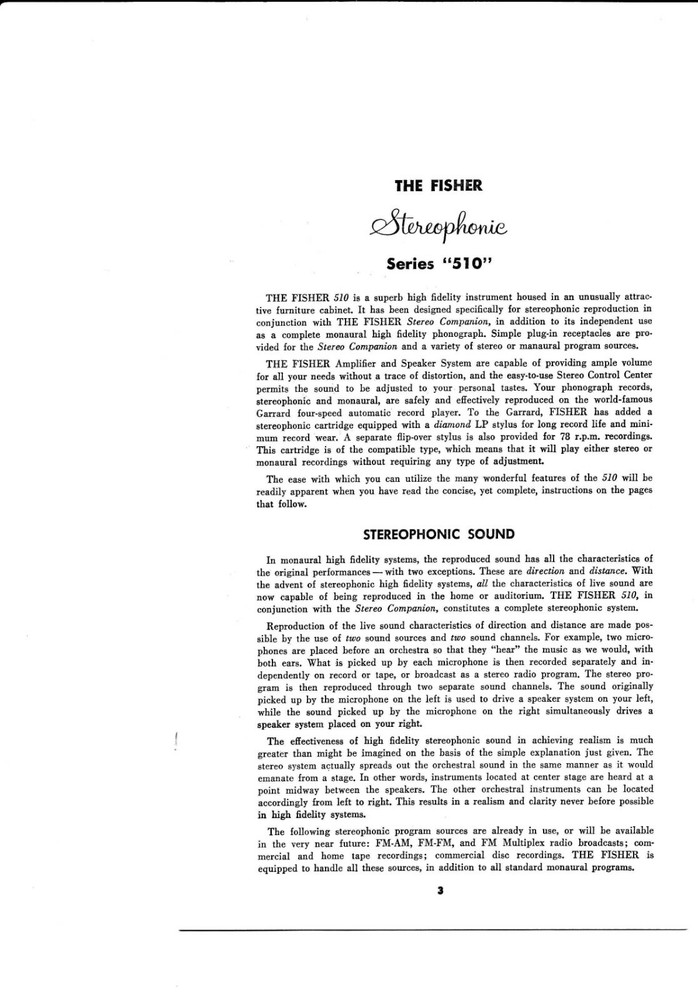 Printed Manual - Updated Listing Fisher Stereophonic Receiver 510 Owners Operator Manual 8 Printed Pages Bound Together PLEASE LOOK AT THE PICTURES SO YOU KNOW WHAT TO EXPECT. I cannot guarantee this manual has clear images, photos or diagrams. I cannot guarantee the illustrations and photos are sharp. I cannot guarantee the text is clear and easy to read. I cannot guarantee the print quality is of high quality.