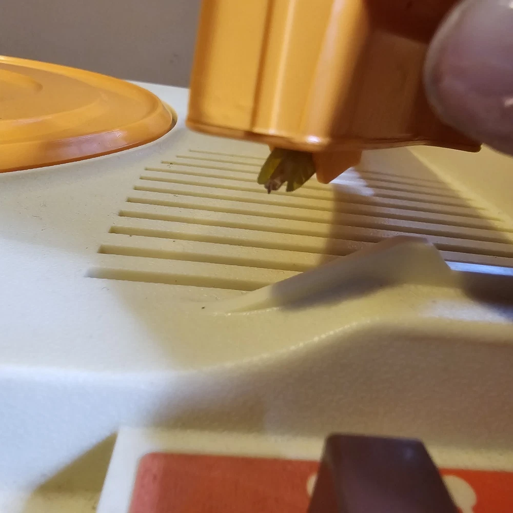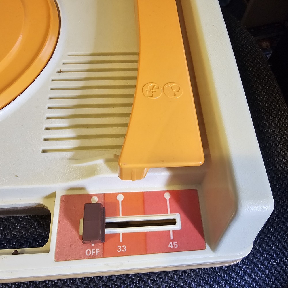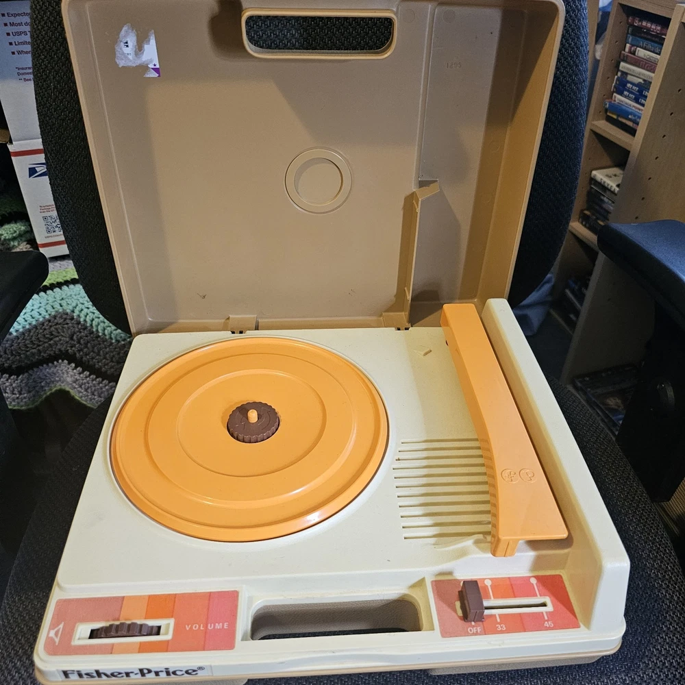 This vintage 1978 Fisher-Price Record Player Portable in orange is a nostalgic musical toy that allows children to play with music on a miniature scale. With its compact size and easy-to-use features, it is perfect for young musicians aged 3-7 to enjoy listening to or playing classic tunes. Made in the United States by Fisher-Price, this record player is a classic addition to any preschooler's toy collection.