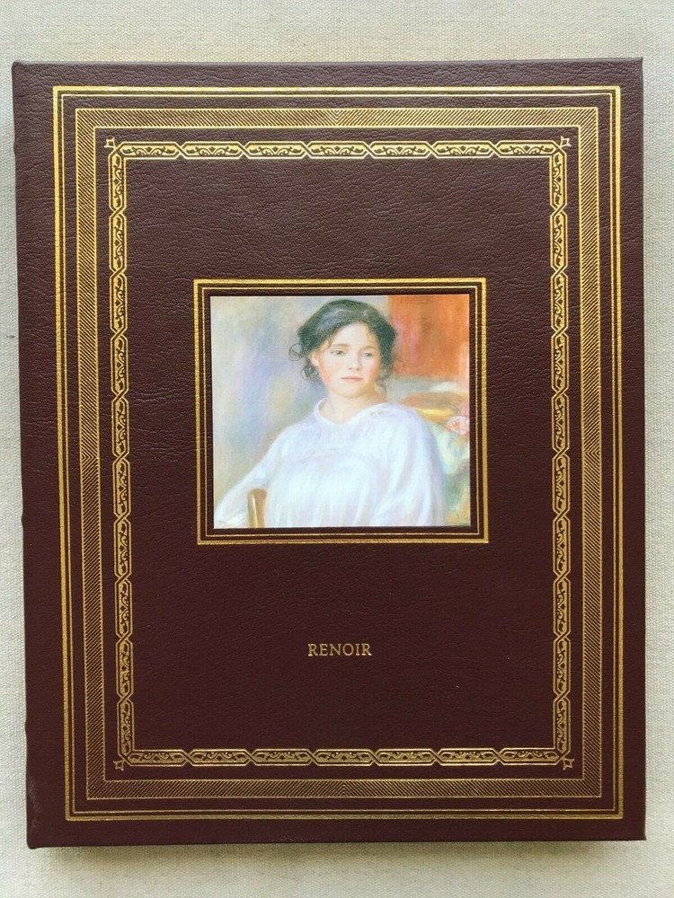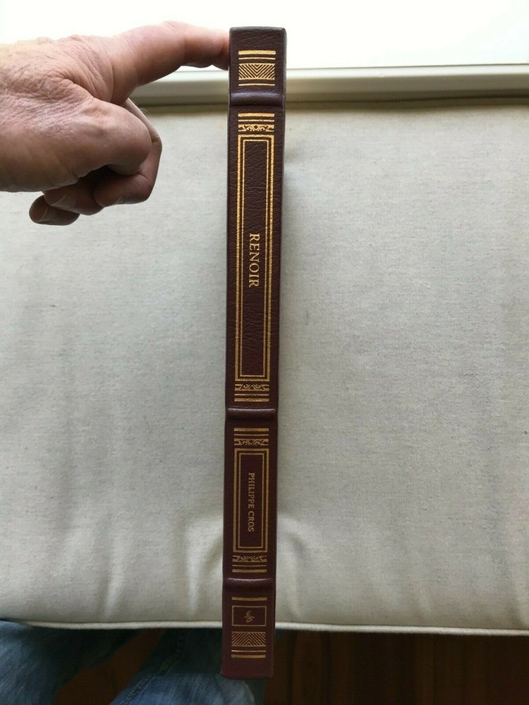 Renoir by Philippe Cros (Easton Leather Bound, New) Renoir by Philippe Cros Published by Easton Press Description: Absolutely beautiful edition, c opyright 2004 by Easton Press. Bound in a brown leather, the book has cream French moire silk end leaves, satin book marker, acid-free paper, symth-sewn binding, hubbed spine, gold gilding on three edges. Condition: A pristine copy, tight and crisp, with no sign of prior use or wear. Binding - fine, unread, new. Book is square, tight, and clean throughout with no wear. I am not a professional book seller. I have been collecting books for almost 40 years. It is now time to clear some space. I try my very best to provide an accurate and detailed description. If you are unhappy with the purchase, returns are accepted within 30 days of auction's end. I offer a full refund once the item has been returned.