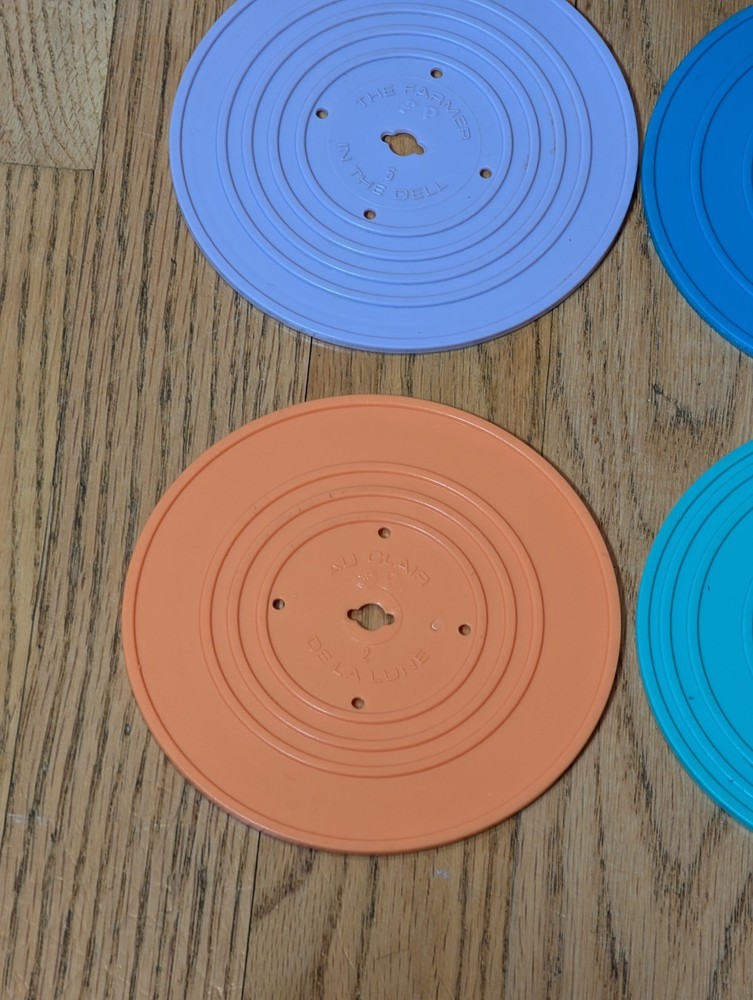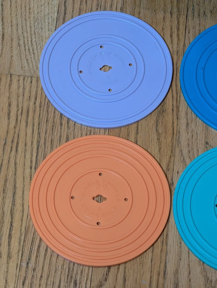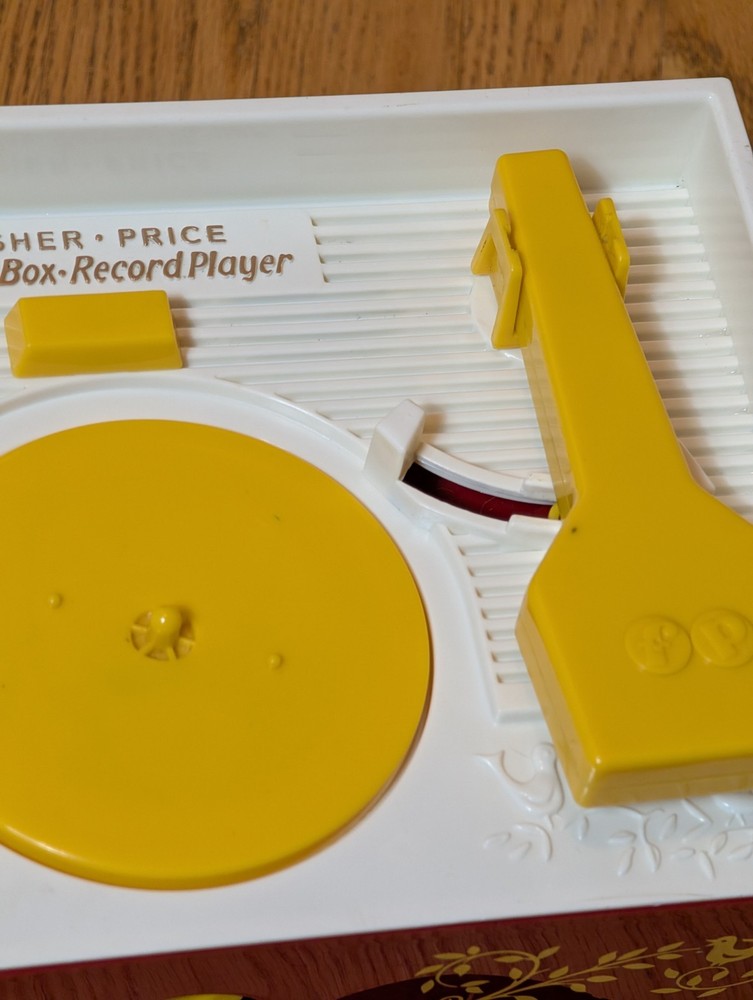 Retro Mattel Fisher Price Music Box Record Player 4 Records 8 Songs 2014 Works...