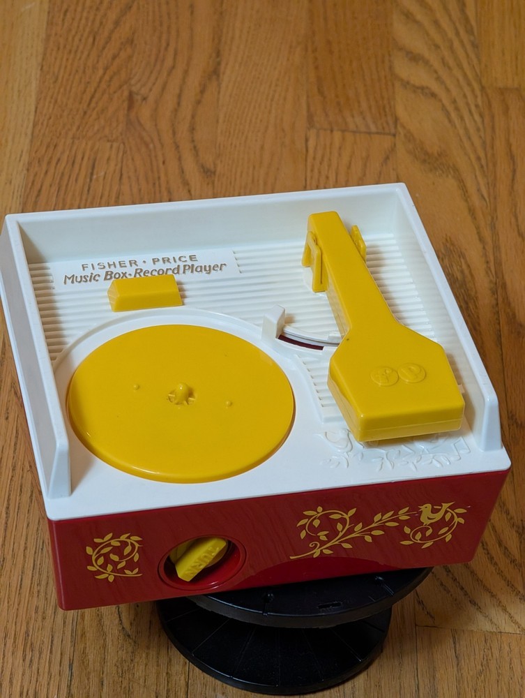 Retro Mattel Fisher Price Music Box Record Player 4 Records 8 Songs 2014 Works