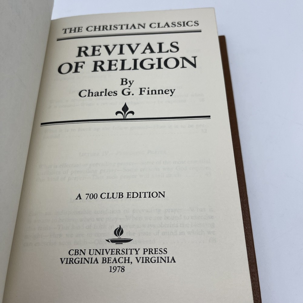 This hardcover book titled "Revivals of Religion" by Charles Grandison Finney is a part of The Christian Classics series and the 700 Club Edition. It contains 493 pages of lectures on Christianity, Protestantism, and the Second Great Awakening. The book is written in English and is intended for an adult audience. The book features faux leather binding, a satin ribbon bookmark, and is unabridged. It was published in 1978 by CBN University Press and is a vintage item. The book measures 8.75 inches in height, 5.75 inches in length, and 1.5 inches in width, with a weight of 26.3 ounces. This nonfiction book is perfect for those interested in religious and spiritual topics, as well as American religion and sermons.