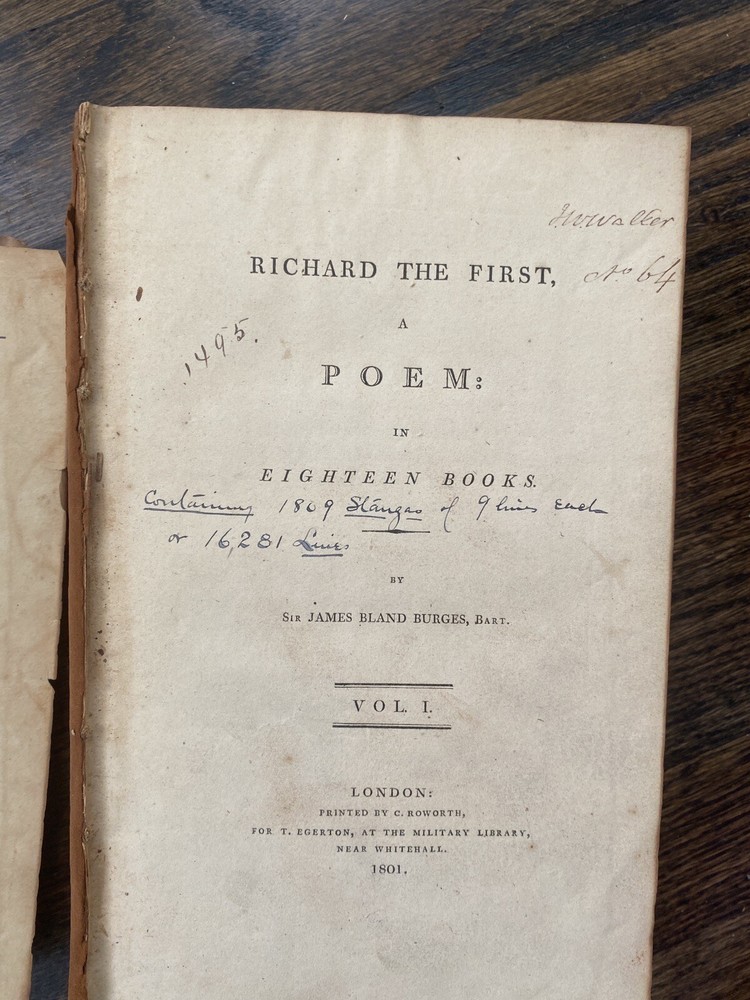 Volume 1 of the first edition of this rare poem. Front cover is separated with a few loose pages. Bookplates and some writing from J..W. Walker and J Guy Seligman. Text appears complete. See photos.