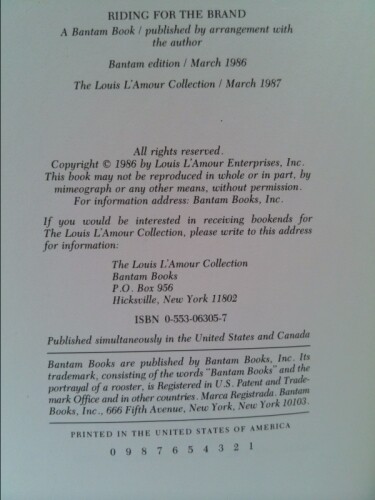 Riding for the Brand (G K Hall Large Print Book Series) by Louis L'Amour First Bantam leatherette edition, first printing. Minimal wear and creasing to covers is consistent with age and little to no use. Binding is tight and secure. All pages are intact and free of all marks or highlights. Book is wrapped in a poly bag for further preservation. Secure packaging for safe delivery.