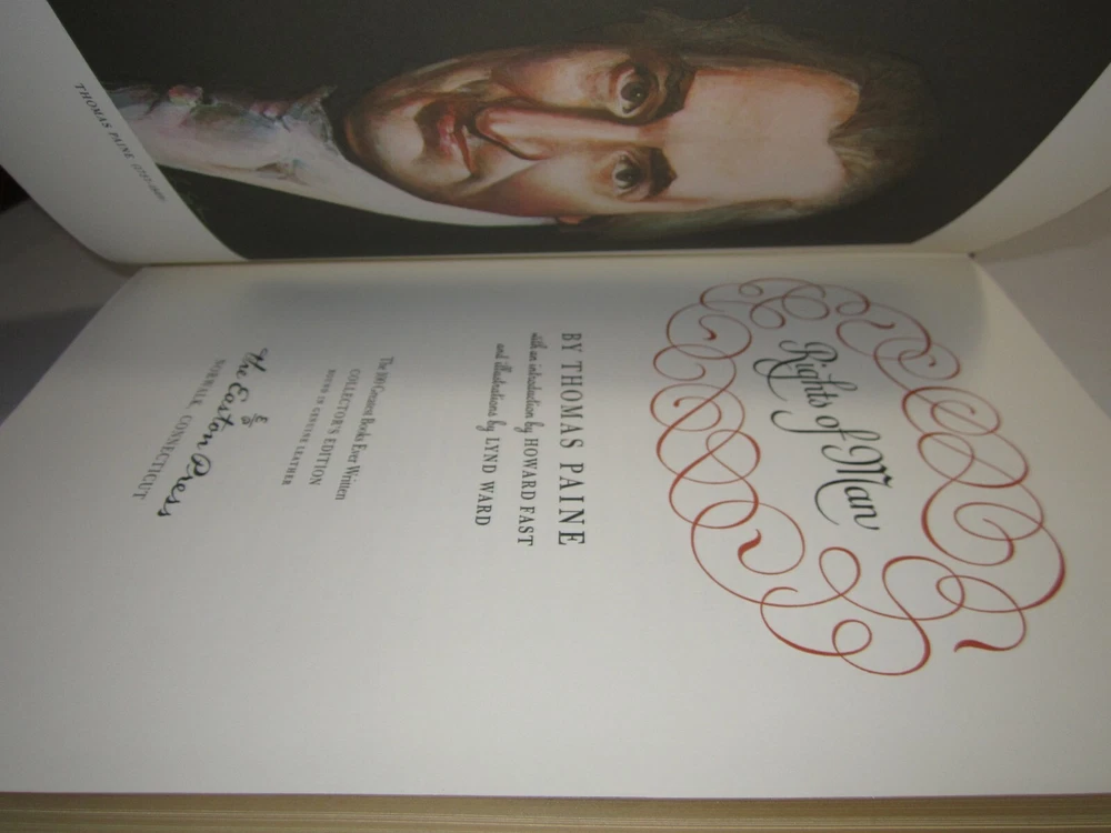 Rights of Man Thomas Paine 100 Greatest Book Collectors Edition Easton Press HC NM Leather in excellent condition like new but does have the previous owners bookplate attached to the inside front cover, you will receive the one in the pictures. This will be shipped within 24 hours of receiving cleared payment or local pickup is available and I also combine shipping but do not pay until I send you a updated combined shipping invoice. NJ Residents sales tax will be added at checkout I have alot of Easton Press Books listed so if you see a few you want not only will I combine shipping I will give you a additional discount for multiple purchases so message me with the books you want and I will reply with the discount