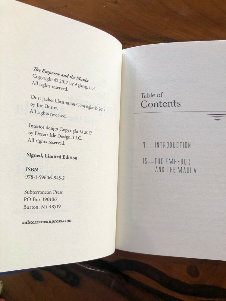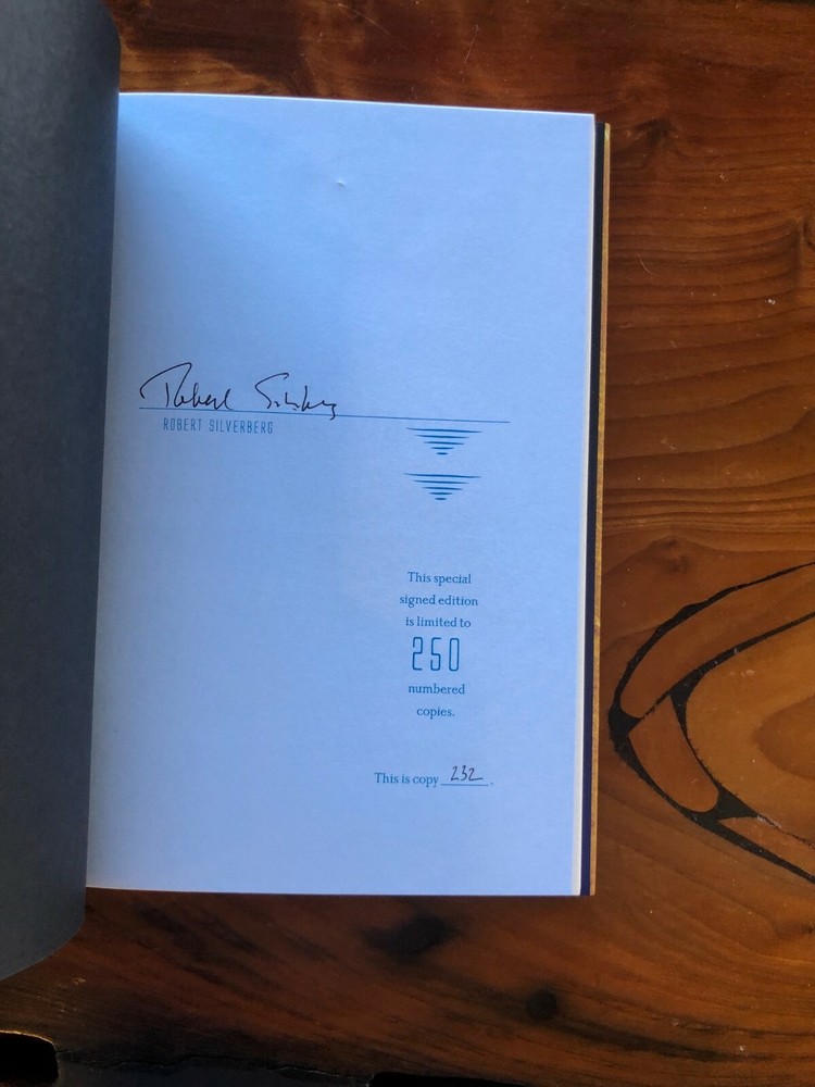 Robert Silverberg The Emperor and the Maula NEW! Signed, Leather Edition. I accidentally bought two copies of this. I read it recently and it was GREAT, very absorbing. Nice to see something newish from Silverberg, at least in the sense it only became available recently. I am a lifelong Silverberg fan and collector and actually won a book collecting award while at UCLA for my collection as it was at the time, with a lot of autographed books, most obtained by meeting the author in person. Haven't seen him much since then. :>) #232 of 250 Signed, Limited Leather Hardcover Editions Robert Silverberg’s The Emperor and the Maula was written in 1992 for an aborted publishing project and has been printed only once, in a radically abbreviated version. This deluxe new edition restores more than 15,000 words of missing text, allowing us to see, for the first time, the author’s original intent. The result is both a genuine publishing event and an unexpected gift for Silverberg’s legion of readers.