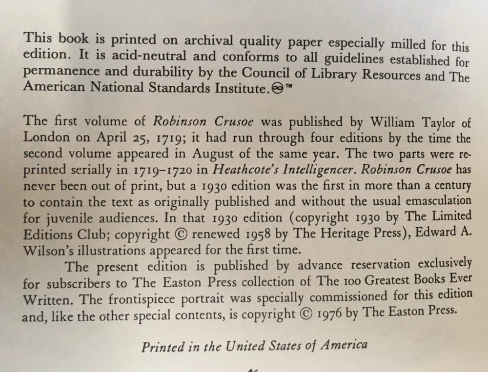 From the Easton Press Series "The 100 Greatest Books Ever Written": Bound in full genuine leather Silk moiré end papers Original Cover Designs Hubbed Spine, Accented in Gold Satin Ribbon Page Marker High Quality Acid-Neutral Paper Pictures are of actual Book