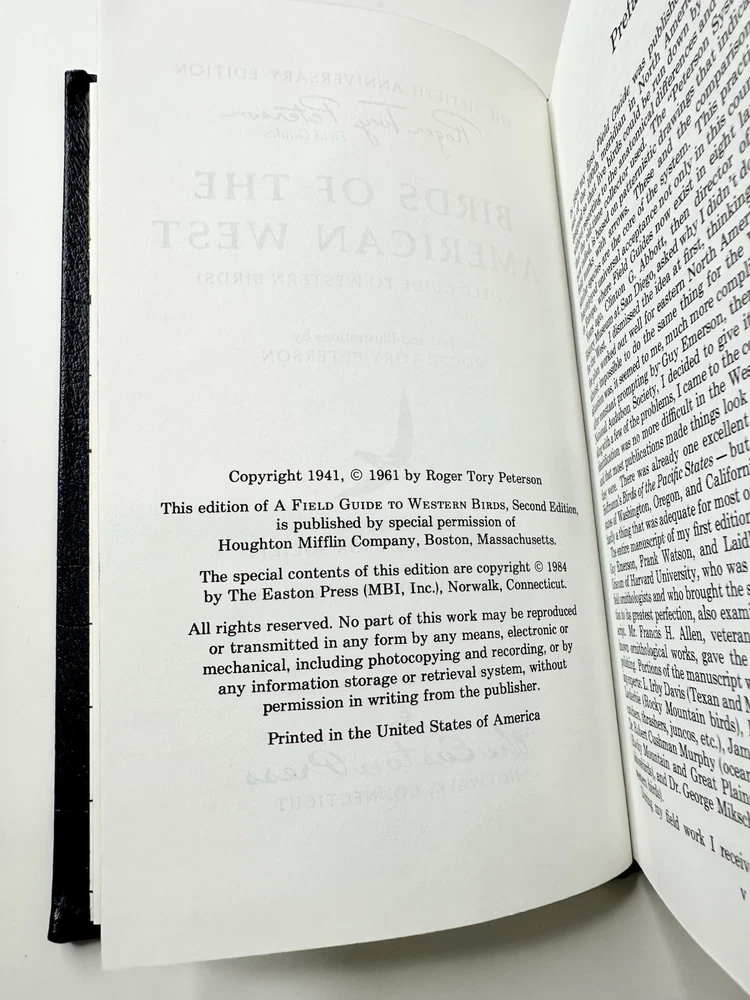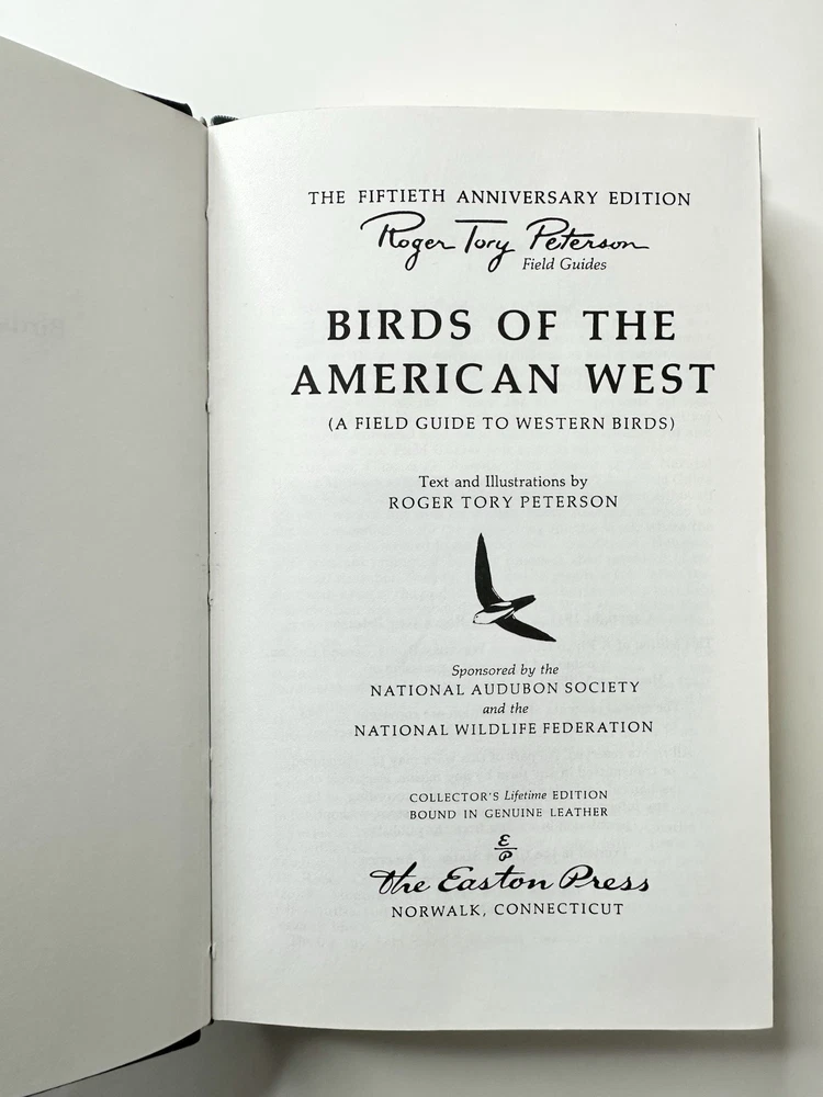 Easton Press Roger Tory Peterson Field Guide BIRDS OF THE AMERICAN WEST Leather This lovely vintage book is in excellent, pretty much un-read condition. It has no written names or inscriptions inside, rips, tears, bends, folds, creases, scuffs or dirty fingerprints throughout. The pages are still crisp. ***BUY SEVERAL ITEMS AND SAVE ON COMBINED SHIPPING*** ***NO RETURNS OR REFUNDS UNDER ANY CIRCUMSTANCES!*** ***BY PURCHASING YOU’RE AGREEING TO RECEIVING WHAT IS PICTURED*** ***All of my items come from a Smoke Free Environment*** ********** 📌 Please Note: We truly value your positive feedback—it lets us know you're satisfied with your purchase and helps our shop grow! We’re always happy to return the favor. Many of our listings rely on photos for description, so please review all images carefully . If you'd like additional pictures or have any questions, feel free to reach out through the eBay message system. We're happy to help! Thanks for looking – Happy shopping! 🛍️