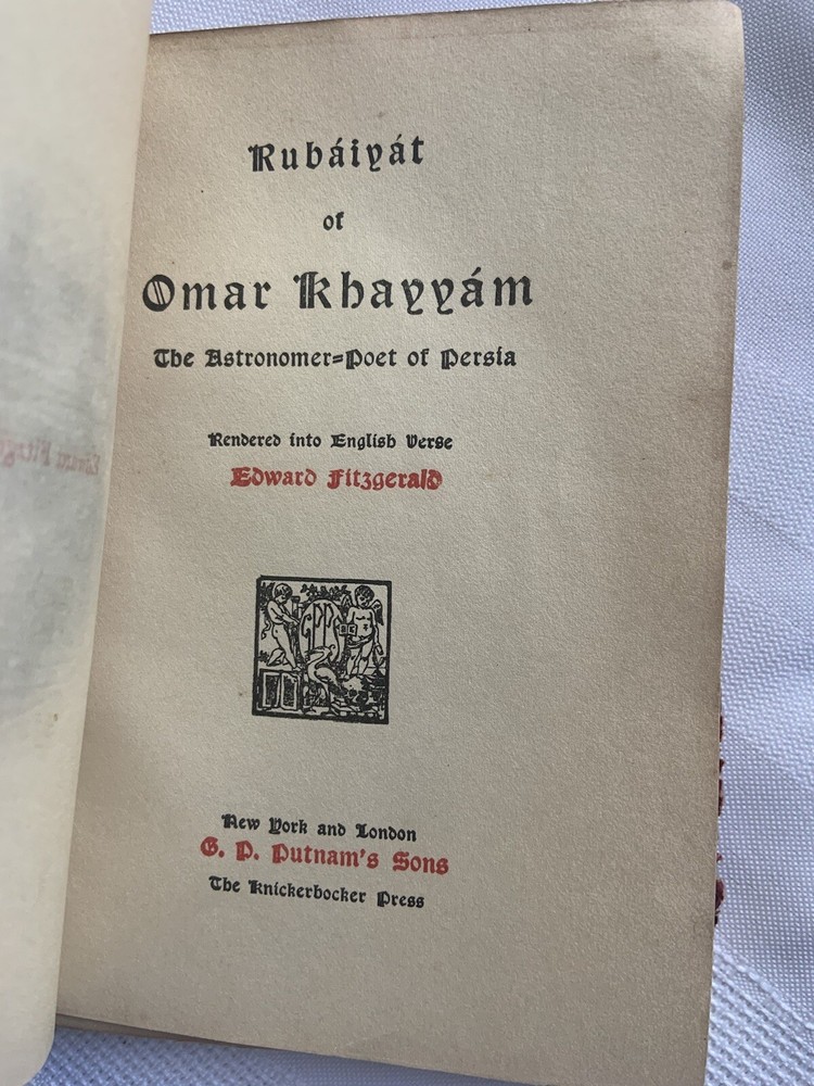 Rubaiyat of Omar Khayyam G P Putnam's Sons Knickerbocker Press Vintage. Vintage condition see photos Secure Name inside We do combined shipping Check out our eBay store/listings We have over 1000 items....Unique, vintage, modern...books, glassware, gifts, toys, clothes, accessories, tech, toys, and more....new and pre-owned items Just click on our profile to see our listings or Go to Our eBay store : Books and Things Uneek ~~~~~~~~~~~~~~~~~~~~~~~~~~~~~~ Whenever possible, we use recycled eco friendly packing material in order to keep shipping cost, item price as low as possible, and to be better stewards of our earth. :) Items, Regardless of condition, may still have sticker or price marked. Please be aware that I will leave removal to buyer so as not to damage book, item, etc Books are listed according to condition. Vintage books, unless stated otherwise, are in usual vintage condition. We do our best to provide adequate photos and accurate descriptions. Please check all photos as they are part of the description. Please know that we have thousands of books, looking through each page for a pencil mark is not possible. We do a check overall condition of our pre-owned books. If a mark is missed, it was not our intent, we will do our best to disclose any mark or flaw. Please note. Antique or vintage items will be left in vintage condition. Any cleaning/refurbishing will be left to buyer to restore or leave in vintage state as to suit buyer’s preference. Return Policy •We will gladly accept your return within 30 days of the original purchase. •Returned or exchanged products must be in brand-new and/ or same condition as shipped •Buyer pays for return shipping •Buyer pays 15% Restocking Fee •Shipping insurance: If items are over $50, I will pay extra insurance coverage for your item if applicable. Thank you.