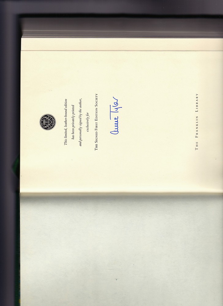 SAINT MAYBE-ANNE TYLER-SIGNED, LEATHER BOUND FIRST EDITION-1991. The Franklin Library, Franklin Center, PA, 1991. First edition. Signed by Tyler. Gilt-decorated full leather, raised bands, all edges gilt, feathered endpapers, satin bookmark. As New. Lovely book.