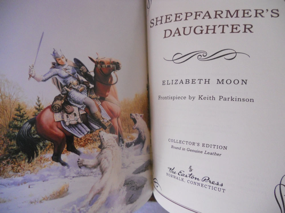 Elizabeth Moon, SHEEPFARMER'S DAUGHTER, Masterpieces of Fantasy series 1998 Easton Press . This book is in very good+ condition. Without previous owner name or attached bookplate. Book shows a scratch to top of gilt page block. Book appears unread. Please ask questions or for more photos if needed. Visit our store for more Easton Press titles.