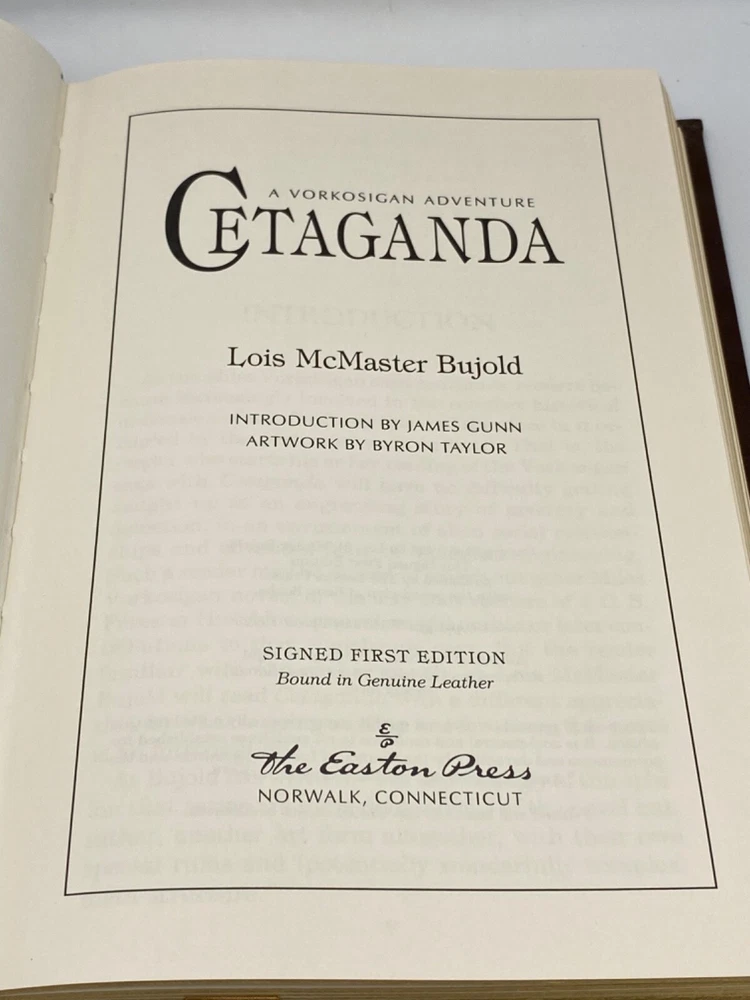 MAKES THE PERFECT GIFT FOR ANY FAN OF BUJOLD / VINTAGE SCIENCE FICTION / FANTASY ** PLEASE READ : Mahalo for taking the time to look at our listing. We truly appreciate it. We always do our BEST to give you the most accurate description of these beautiful books. If, however, you have any SPECIFIC questions about the SIZE of the book, NUMBER of pages, TYPE of leather, SMELL or FEEL of the book, PLEASE email us through EBay’s mail system BEFORE you bid, and we will be HAPPY to give you more information. We want you to be completely happy with your purchase and keep you as our customers for years to come!** DESCRIPTION: Easton Press full-leather binding, part of the OUT OF PRINT edition of CETAGANDA personally SIGNED FIRST EDITION by LOIS McMASTER BUJOLD. ONLY 1250 OF THESE WERE EVER PRINTED, THIS BEING A VERY LOW #19 . THIS IS A SCARCE VINTAGE HEIRLOOM EASTON WITH LAVISH DEEP GILT IMPRINTS TO THE BOARDS AND SPINE with A BEAUTIFUL FULL-COLOR ILLUSTRATIONS . IT IS ONE OF THE MOST HIGHLY-PRIZED EDITIONS OF THIS SCIENCE FICTION MASTERPIECE. 🍍 NOT INCLUDED... 😃 ABOUT THE BOOK: When the Cetagandan empress dies, Miles Vorkosigan and his cousin Ivan are sent to Cetaganda for her funeral as diplomatic representatives of Barrayar. Upon arrival, the two men are inexplicably attacked by a servant of the late empress. When the same servant turns up dead the next day, Miles and Ivan find themselves in the middle of a mystery. CONDITION: Book is in LIKE NEW for its age with no discernible flaws (SEE PICS FOR FURTHER DETAILS). NO ATTACHED BOOKPLATES, WRITING FROM PREVIOUS OWNER, ETC. It is a GORGEOUS EDITION. SHIPPING: FREE TO US ADDRESSES ONLY. INTERNATIONAL $ based on location. WE SHIP PRIORITY MAIL & PACK VERY WELL. Please check out our other listings of Easton Press, Franklin Library, Limited Editions Club, First Edition Library, Folio Society, Heritage Press, and International Collectors Library editions. WE DO COMBINE SHIPPING IF YOU PURCHASE MORE THAN ONE COPY. Mahalo for looking at our listings! By bidding/purchasing this item, you are helping a very grateful family who sends you our WARMEST ALOHA & MAHALO!
