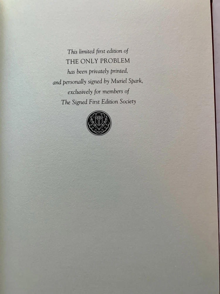 TITLE: The Only Problem AUTHOR: Muriel Spark PUBLISHER: The Franklin Library YEAR: 1984 First edition signed by the author Near mint Same or next day shipping. Professionally packed. Satisfied customers, see our feedback.