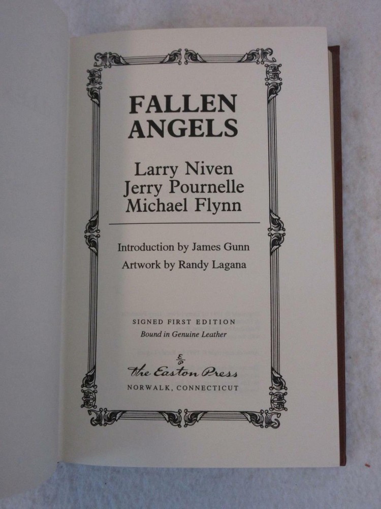 SIGNED 3x Larry Niven, Jerry Pournell & Michael Flynn FALLEN ANGELS 1991 Easton Press SCI-FI First Edition Leather-bound Includes the unused Easton Press Signed First Editions of Science Fiction Bookplate. In near fine condition, appears unread. Please examine photos for details. Condition: We strive to describe and photograph the condition of every item as accurately as possible. Photos are of the actual item that is being sold. Please examine the photos carefully for any condition details and possible flaws. Best Offers: Items are available for offers only after being listed for 30 days. We consider all offers in relation to current market values. We try to respond almost immediately to most offers. Most of our counteroffers are firm but we are open to bargaining. Shipping: We combine shipping. When ordering multiple items from us please request a total before paying. We charge postage based on weight plus $1 for each eBay listing. All of our orders are packed carefully to prevent damage during shipment. We ship most of our items within 24 hours. Contact Us: We are available 7 days a week and are happy to answer any questions you may have. THE simple solution for eBay sellers.