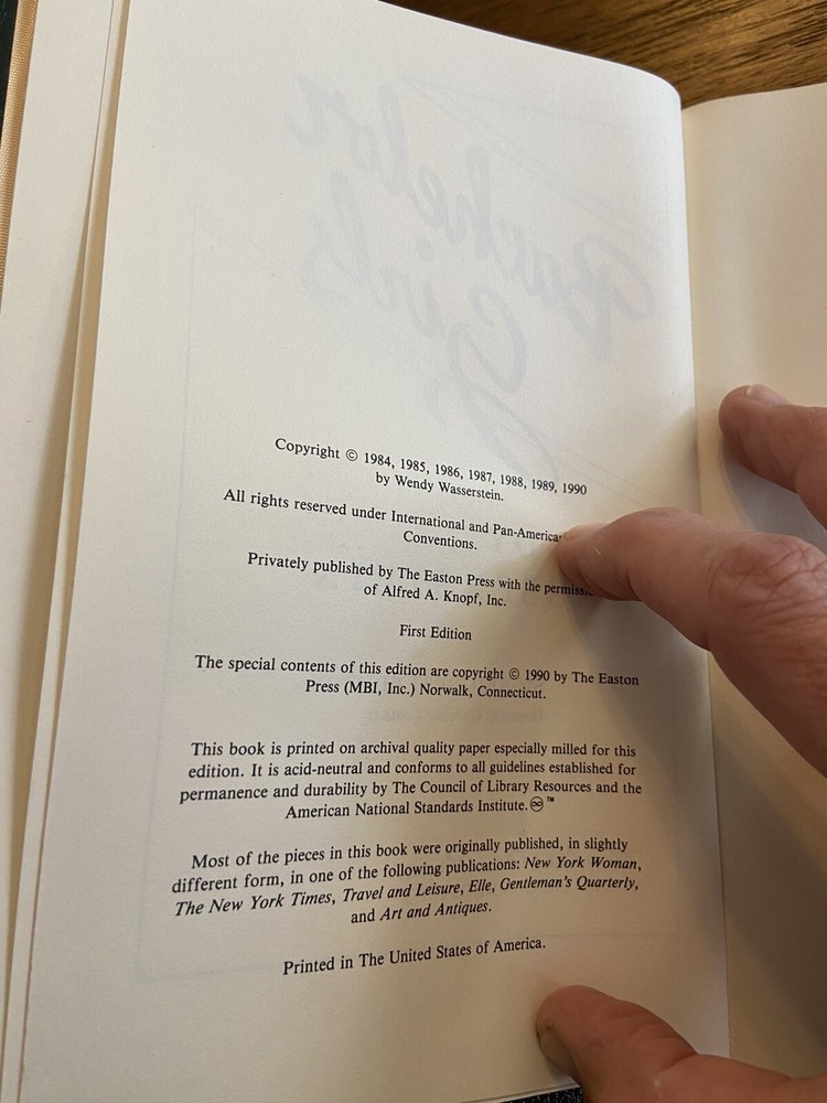 SIGNED EASTON PRESS Bachelor Girls Wendy Wasserstein 1990 Leather bound Book has some wear (see pics) Binding is a bit worn (see pics)