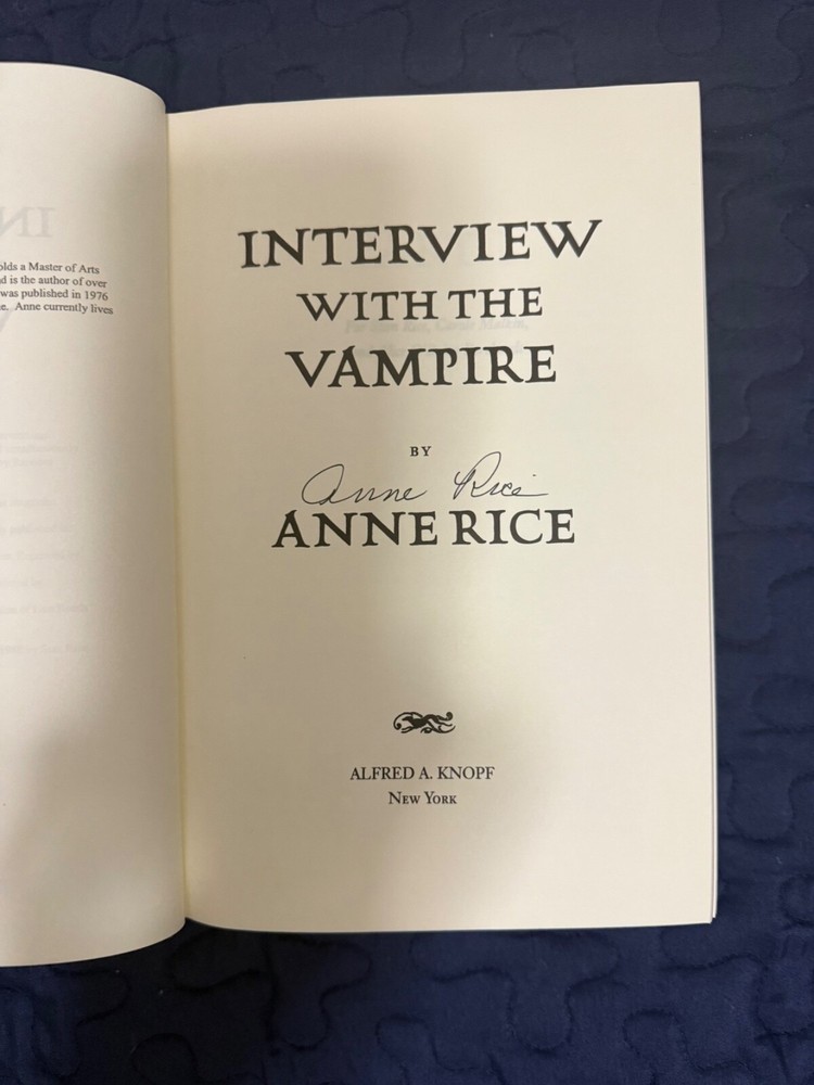 AUTOGRAPHED COPY The Vampire Chronicles Interview with a Vampire S igned In My Presence by Anne Rice in 2013 At The Lincoln Park BN in Dallas with her son, Christopher. This Book has only been opened for Ann to sign it, consider it in excellent condition