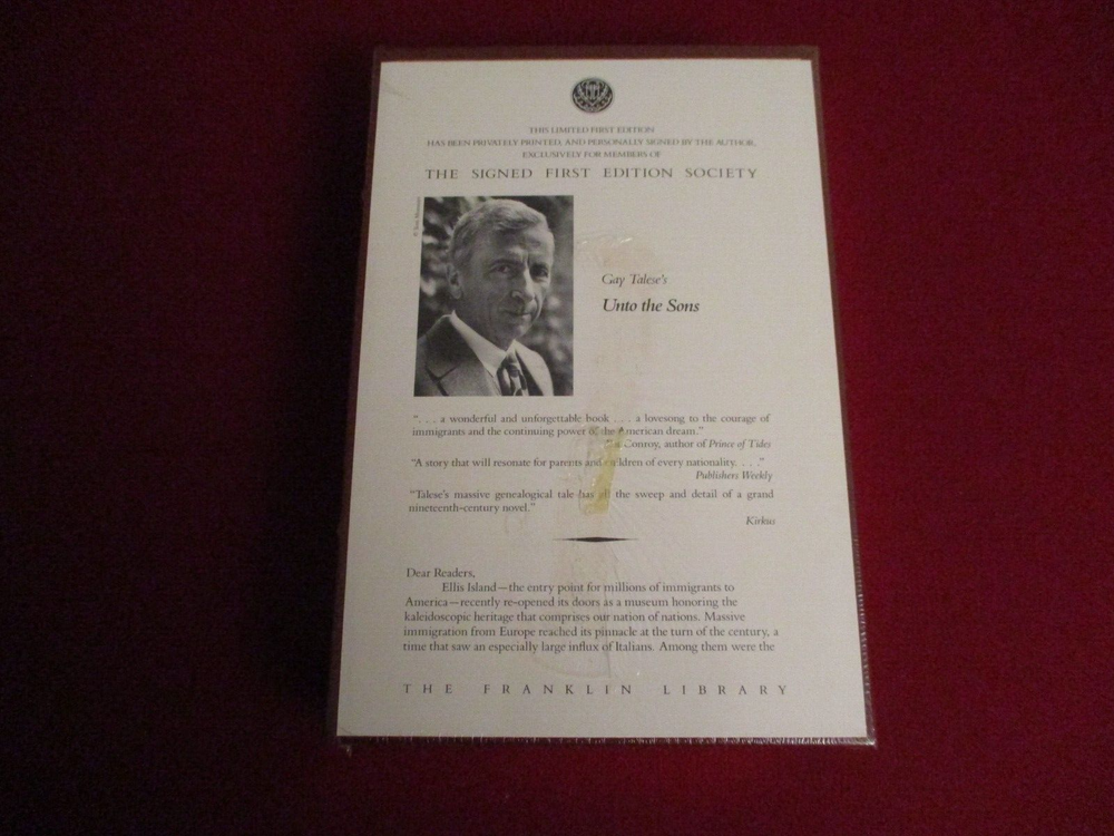 Leather bound novel in brand new and factory sealed condition. This is the true 1st edition. Leather bound with gold gilt edges and gold embossing. Ribbed spine with a bound-in bookmark. Signed by Gay Talese. Free media mail shipping.
