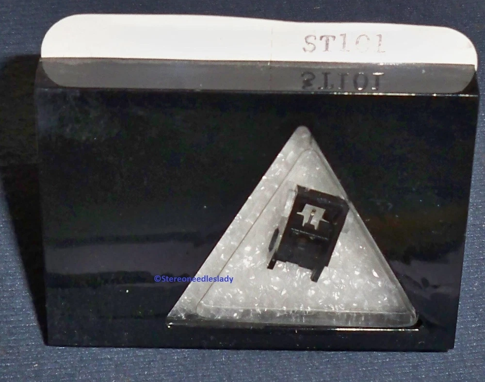 Phonograph needle, unbranded ST-101 SD, replaces: Sanyo Fisher ST-101-SD. Used in: Sanyo Fisher MG-101SD cartridges. Tip: .7 mil diamond. Speeds: 33 & 45 RPM. New old stock. Misc. Search my store titles AND descriptions for your needle no., cartridge no., or brand. E-mail for further help. IF YOU ARE PURCHASING A NEEDLE Model numbers are provided in manufacturer's references for the cartridge they installed in those models. If the cartridge has been changed by a dealer or user, this needle will not be correct for the model numbers listed, as it is the cartridge that determines what needle is needed. Be sure it looks like your old needle.