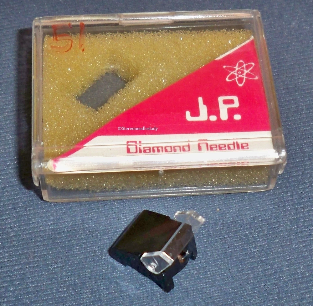 Stereo record player needle J.P. replacement for Sanyo ST-20J. Replaces: Electro-Voice, EV PM3192D Sanyo ST-20, ST20, ST-20D, ST20D. Used in: Sanyo MG-20, MG20, Excell N-700 CR, Nagaoka JN-11, Sanyo ST-7, Telefunken TM-1000. Used in: Sanyo MG-20, Excel QD-700-C, Nagaoka JN-311, Nagaoka JT-411, Sanyo MG-27, Sanyo MG-27LST7, Sanyo STG-7, Telefunken TM-1000. Tip: .7 mil diamond. Tracking force: 1-1/2 to 2 grams. House packaged from bulk. Speeds: 33 & 45 RPM. New old stock. Misc. Search my store titles and descriptions. Enter your needle no., cartridge no., or brand name. E-mail for further help. IF YOU ARE PURCHASING A NEEDLE Model numbers are provided in manufacturer's references for the cartridge they installed in those models. If the cartridge has been changed by a dealer or user, this needle will not be correct for the model numbers listed, as it is the cartridge that determines what needle is needed. Be sure it looks like your old needle.