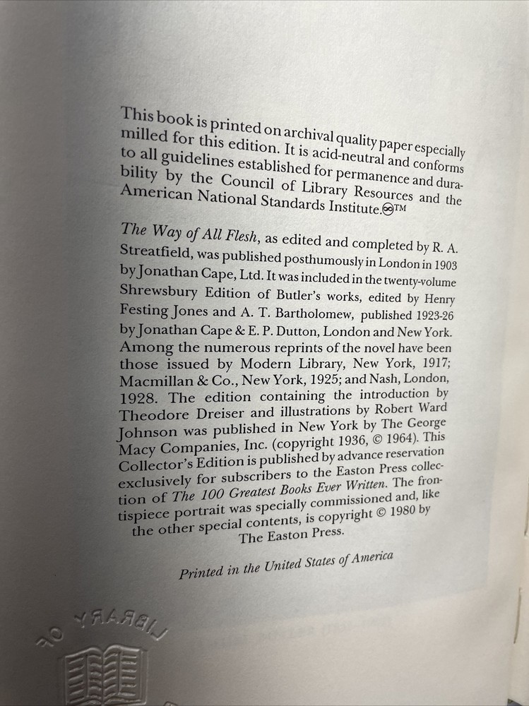 Samuel Butler - The Way Of All Flesh, 1980 Easton Press Collectors Ed, Leather.