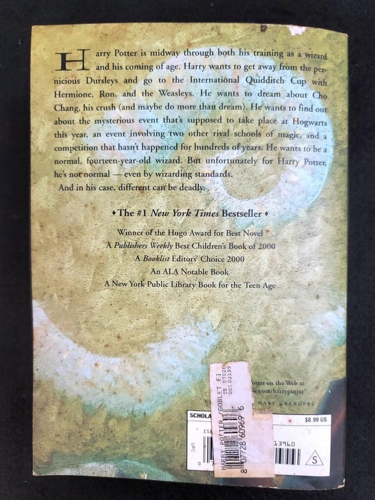 Immerse yourself in the world of Harry Potter with this paperback printing of "Harry Potter And The Goblet Of Fire" by J.K. Rowling. Join Harry as he competes in the Triwizard Tournament and faces new challenges while navigating the wizarding world. This book is a part of the Harry Potter series and is perfect for young adults who love fiction, action, and adventure. Published by Scholastic in 2000, the book is written in English and has special attributes like the Scholastic logo. Don't miss out on the opportunity to add this novel to your collection. . You will receive what is in the photo. **SOLD AS SHOWN ** PLEASE VIEW ALL PHOTO'S AS THEY ARE THE BEST DESCRIPTION. I do not offer returns… so purchase wisely