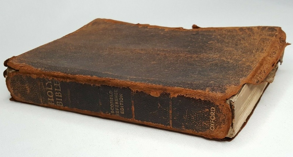 Scofield Reference Bible KJV 1945 Genuine Leather Facsimile Series 2 Softcover - This is a well used and loved bible, the cover shows a great deal of wear and deterioration from use and age. There is folding, rips, wrinkles in the pages, pen writing on portions along with underlining, please review pictures for details. Thank You