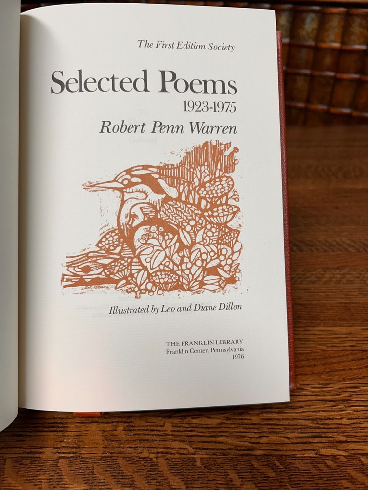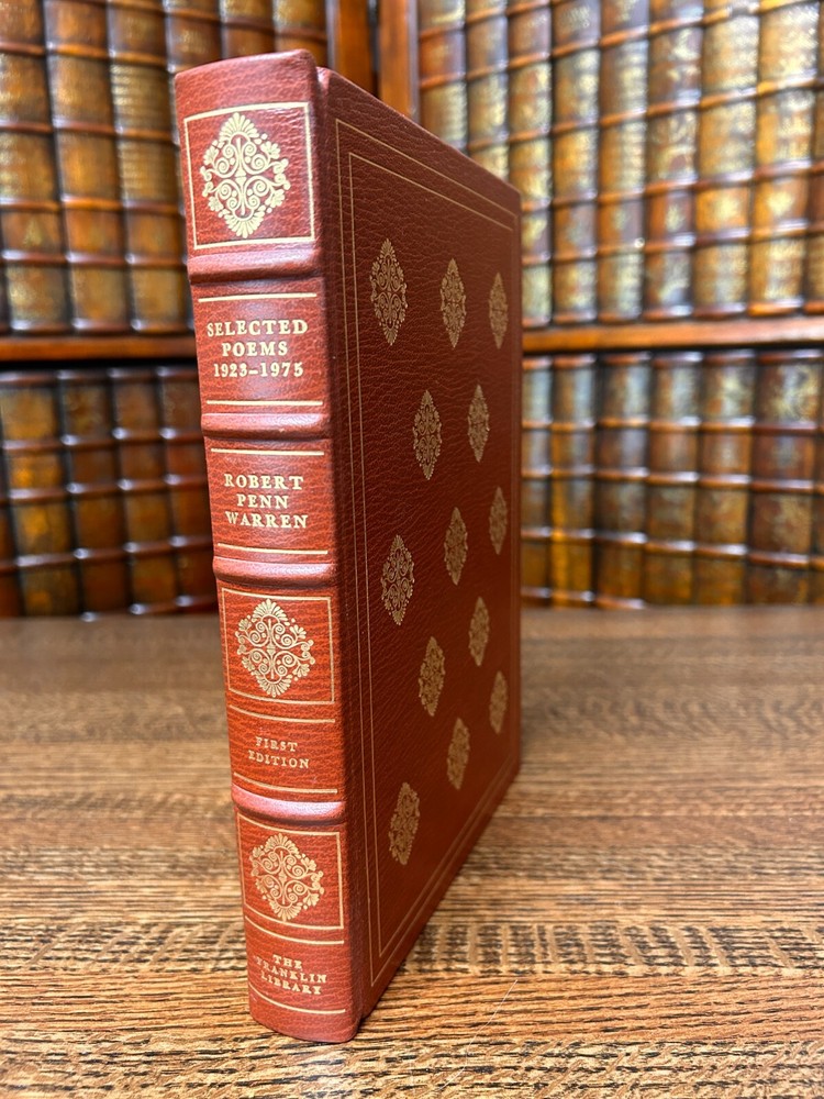 Selected Poems 1923-1975, R P Warren; Limited First Ed Leather Franklin 1976 Full Leather, gold gilt lettering and edges, satin marker, raised bands to spine. Published by Franklin, for members of the First Edition Society, Limited. Unmarked. Minimal handling and use wear.