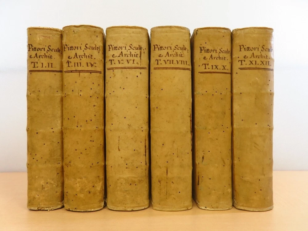 Item Description Title: Serie degli uomini I piu illustri nella pittura, scultura, e architettura con I loro elogi, e ritratti incisi in rame Publication Years: 1769-1775 Publisher: Nella stamperia di S.A.R. per G. Cambiagi, Florence Volumes: Complete set of 12 volumes (bound as 6 books) Engravings: 300 copperplate engravings (portraits) Condition: Exterior: Complete and intact; minor insect damage on the cover and endpapers. Content: No unreadable sections; some pages contain old annotations. Overall, the condition is very good. Availability: Currently out of print or sold out from the publisher. Content Highlights: This renowned work features detailed portraits of notable artists from the Middle Ages to the Renaissance. Each volume includes 25 artists, totaling 300 key figures in art history. Featured Artists: Giotto Jan van Eyck Donatello Brunelleschi Paolo Uccello Piero della Francesca Filippo Lippi Michelangelo Giovanni Bellini Botticelli Leonardo da Vinci Mantegna Dürer Lucas Cranach Binding and Size: Binding: Full leather (vellum), hand-painted spine title, marbled edges. Dimensions: 190mm x 240mm Language: Italian Shipping Worldwide Flat Rate Expedited Shipping ...3~8 days Cost : 0.00 Other Term International Buyers Please Note: Import duties, taxes and charges are not included in the item price or shipping charges. These charges are the buyer's responsibility. Please check with your country's customs office to determine what these additional costs will be prior to bidding/buying. These charges are normally collected by the delivering freight (shipping) company or when you pick the item up - do not confuse them for additional shipping charges. We do not mark merchandise values below value or mark items as "gifts" - US and International government regulations prohibit such behavior. Track Page Views With Auctiva's Counter