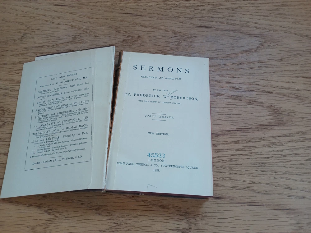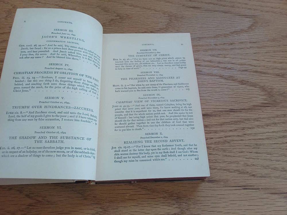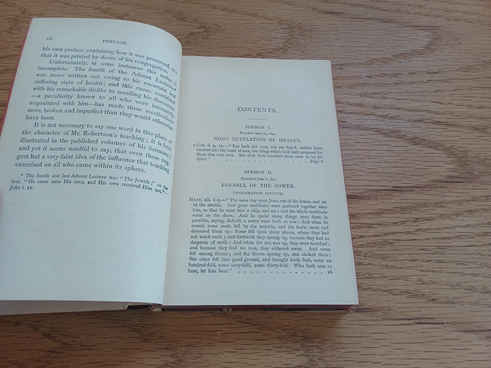 This vintage 1888 edition of Robertson’s sermons is a treasure for collectors and readers alike. The separating binding and slight wear add character, showing its well-preserved history. Despite some marks and corner wear, the pages remain clean and legible. Stored in a climate-controlled, dark room, it's clear this book has been cared for. Free media mail shipping in the U.S. makes it a fantastic deal. A must-have for those who appreciate classic theological works!