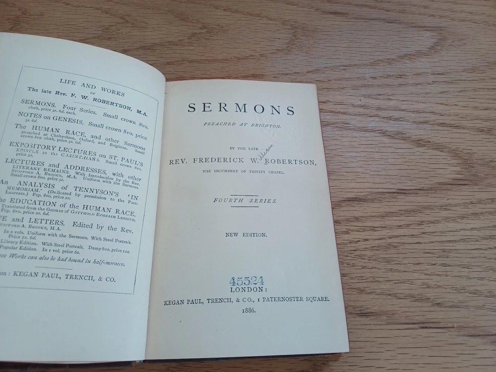 Frederick W Robertson Sermons Fourth Series 1886 New Edition