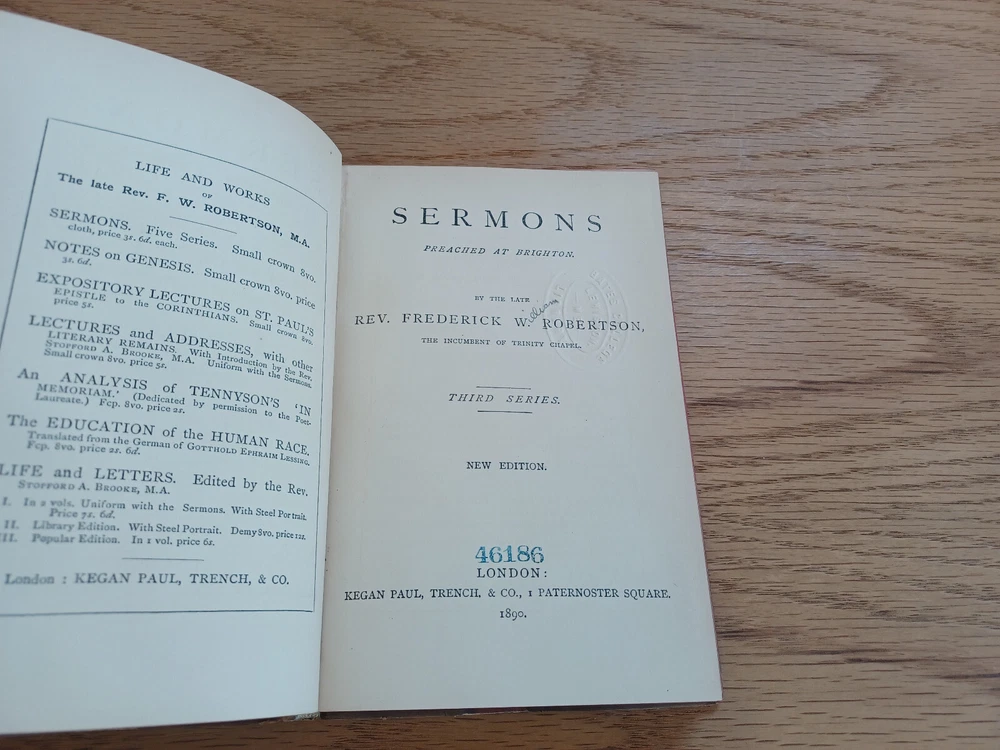 Frederick W Robertson Third Series Sermons 1890 New Edition