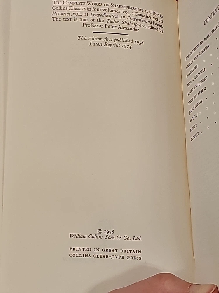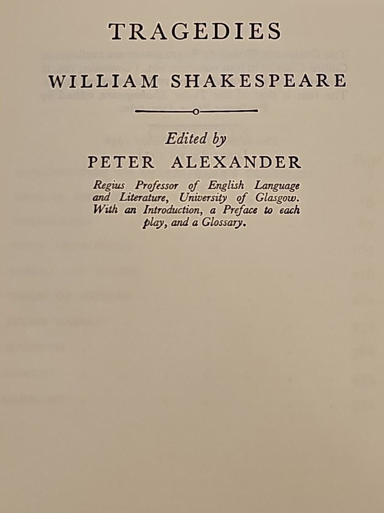 This is a luxury and collector's edition of Shakespeare's Tragedies, published by Collins London Glasgow in 1974. The editor of this edition is P. Alexander, and the book is bound in leather. The book features William Shakespeare's famous tragedies and is in English. The book is a great addition to any literature and fiction collection, especially for fans of William Shakespeare. The book is from Europe, specifically the United Kingdom, and is in excellent condition. Title: Shakespeare's Tragedies Author: William Shakespeare Publisher: Collins Edited by: Professor Peter Alexander Publication Date: 1974 Book Condition: Excellent/Near Fine Antiquarian; unread copy Dust Jacket Condition: N/A Format/Binding: Leather Additional Details: May have scuff on lower section of spine; minor foxing on a few pages. Please Refer To Photos for complete details of book. Ask any questions prior to purchase. Shipping Terms: Orders usually ship within 2 business days. Shipping costs listed is for book weighing 2 lbs or less shipped uninsured media mail. Additional postage is required for books over 2 lbs, oversized, multi-volumne, insured or shipped out of the United States. Insurance is required on all books $100 or higher. Books under $100 will be shipped uninsured unless customer requests insurance. We cannot be responsible for undelivered packages that are uninsured once it is in the hands of the post office. This item will be shipped MEDIA MAIL unless otherwise discussed.