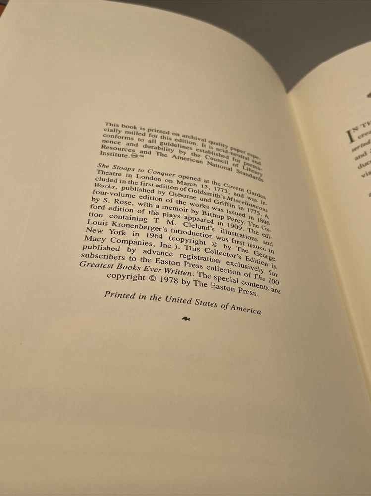She Stoops To Conquer - Oliver Goldsmith - Easton Press Collector’s Edition 1978