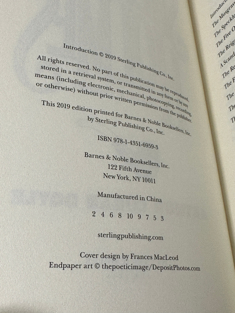 Book Condition: Brand New Format: Faux Leather Bound Year: 2019 Stated Print: 2nd Publisher: Barnes & Noble Booksellers, Inc. Additional Condition Info: Please refer to pictures for overall condition. __________________________________________ If you need more information, have questions or would like to request additional photos, please feel free to ask. All fixed priced books include free First Class or Media Mail Shipping via USPS within the U.S BOOK CONDITION SCALE Like New: A book that looks new but has been read. May show the most minimal signs of shelf wear if any. Very Good: A book that does not look new and has been read but is in excellent condition. No obvious damage to the cover. Very minimal wear and tear. Pages are free of any highlighting or notes. May contain previous owners name or marks from bookstore. Good: Very minimal damage to the cover. May Contains minimal highlighting, underlining and/or note taking. May contain previous owners name or marks from bookstore. Acceptable: A book with obvious wear. May have minor damage but nothing that compromises the legibility or understanding of text. May contain heavy highlighting/underlining/notes. All significant defects will be noted. May contain previous owners name or marks from bookstore. As is: Describes a book that is sufficiently worn. This copy may be soiled, scuffed, stained, or spotted and may have loose joints, hinges, pages, etc. Any defects will be noted. DUST JACKET GRADING: (A) Excellent condition, may show the smallest signs of shelf wear if any. (B) Shows minor shelf wear, contains some small tears or creases mostly along edges. (C) Contains moderate shelf wear, contains some medium sized tears and stains. (D) Contains large tears and may have some very noticeable stains. (F) Contains heavy wear and tear, portions of the DJ may have been ripped off and is missing. May Contain heavy staining.