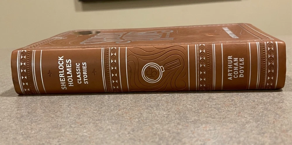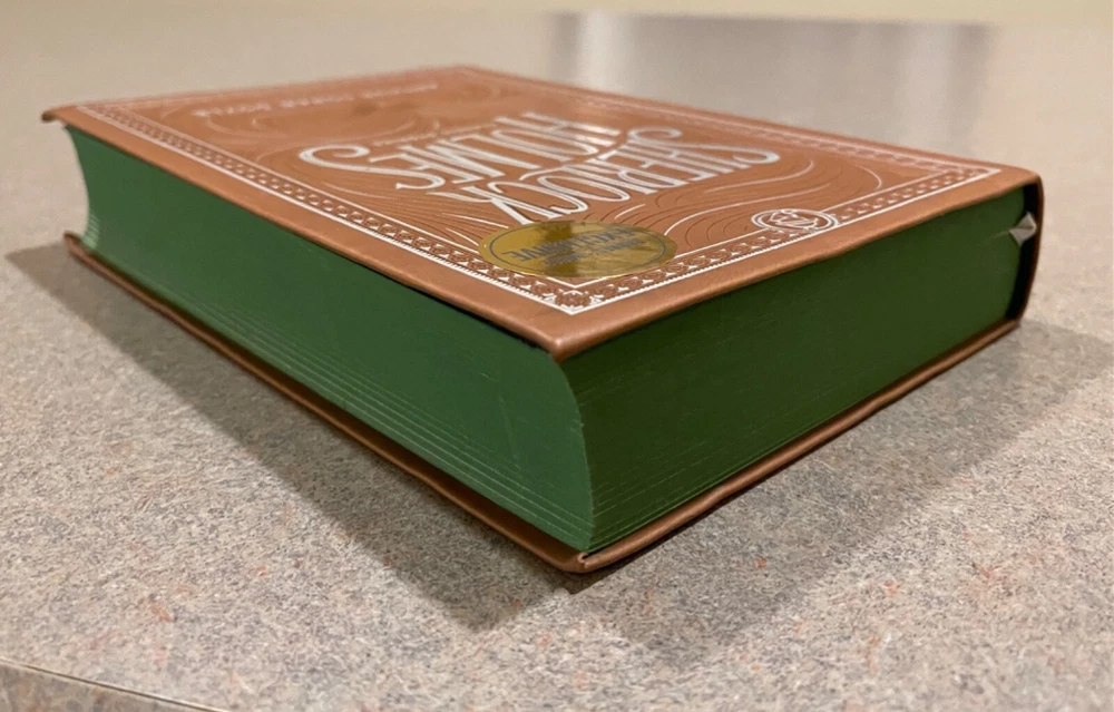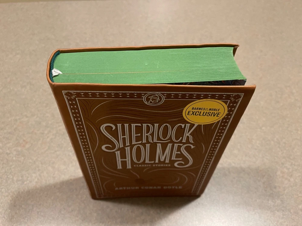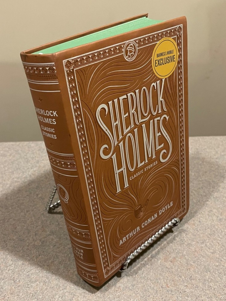 For sale is a a deluxe, faux-leather flexibound copy of the Barnes & Noble Exclusive edition of “Sherlock Holmes: Classic Stories” by Sir Arthur Conan Doyle. Bound in soft, flexible faux leather, this deluxe edition also features a ribbon book mark and green stained-edge pages. Has a little shelf wear but is otherwise in excellent condition.