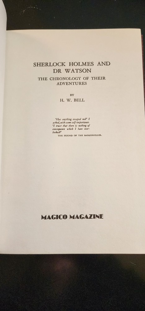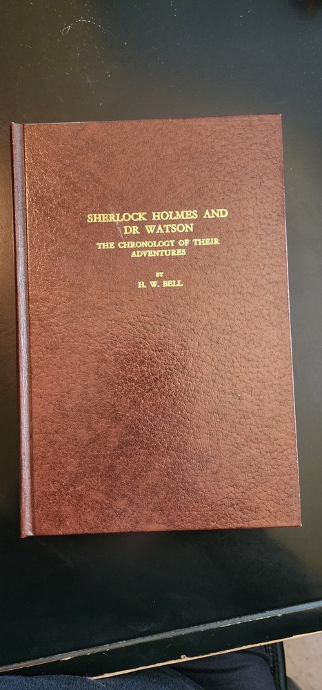 PRISTINE original 1984 publication of Sherlock Holmes and Dr. Watson The Chronology of Their Adventures by H.W. Bell. Binding is perfect. Book rarely opened. No Dust Jacket. Leather Look Bound. Selling for over $100 on rare book sites.