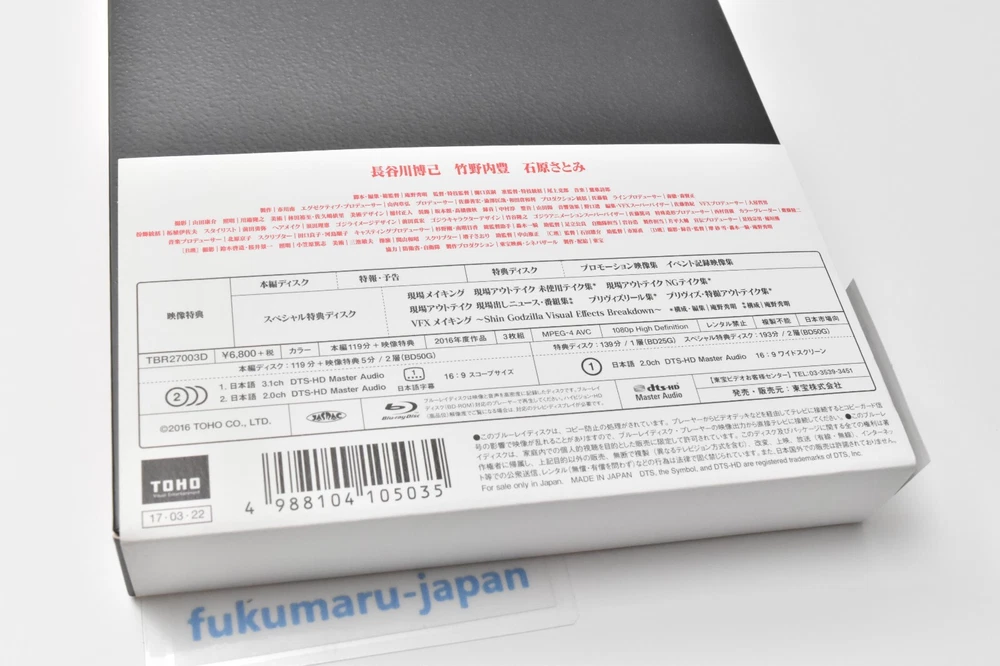 Shin Godzilla Blu-ray 3 discs & Steelbook Disc Case TOHO 2017 Description Condition : Used very good condition. Blu-ray Region: A(Americas, Southeast Asia, Japan, Korea, Taiwan) Language: Japanese . English subtitles are not available. Size: (Steelbook) about 17cm × 13.5cm (6.6929 in × 5.3149 in) " Shin Godzilla " Blu-ray (3 discs) & Steelbook(Disc case) set. Payment Payment is due within 5 days of the auction end. Shipping We use " International courier service " We attach the tracking number . International Buyers - Please Note: ●We will ship within 3 business days after payment.We will be sure to provide you with a tracking number. (Not including holidays, etc.) ●We will ship by express fedex delivery. (Depending on the region or country, we may ship by DHL, EMS, etc.) ●Customs duty is not included in the product price. (Customs fees vary by country and region.) ●PO Box is unable to deliver. If you have any further questions, please feel free to contact us. We will reply to your inquiry within 24 hours.