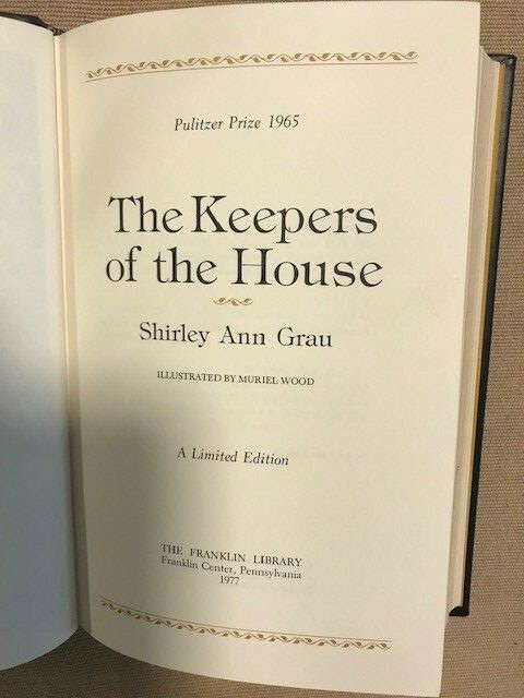 Shirley Ann Grau. The Keepers of the House. Franklin Center, PA: The Franklin Library, 1977. Illustrated by Muriel Wood. Part of the Franklin Library's Pulitzer series. Grau won the prize in 1965. Bound in full leather, with gilt decorations on the covers and spine. A.e.g. with a silk bookmark. A handsome copy.