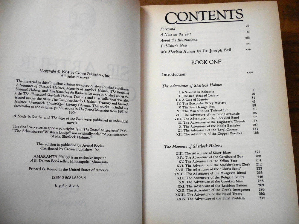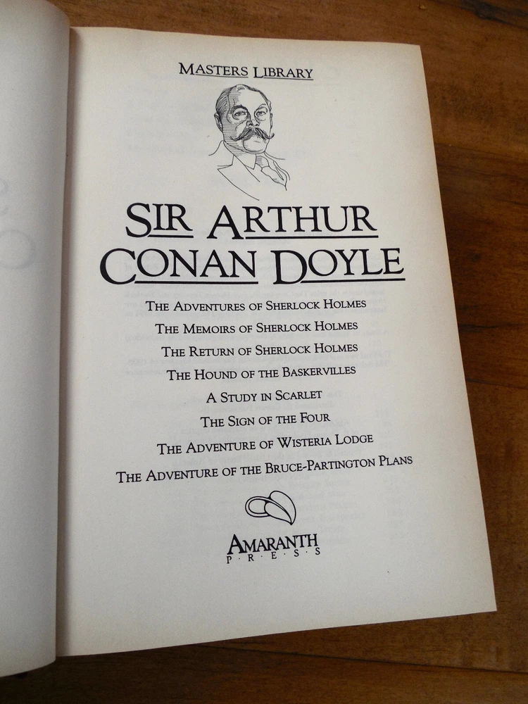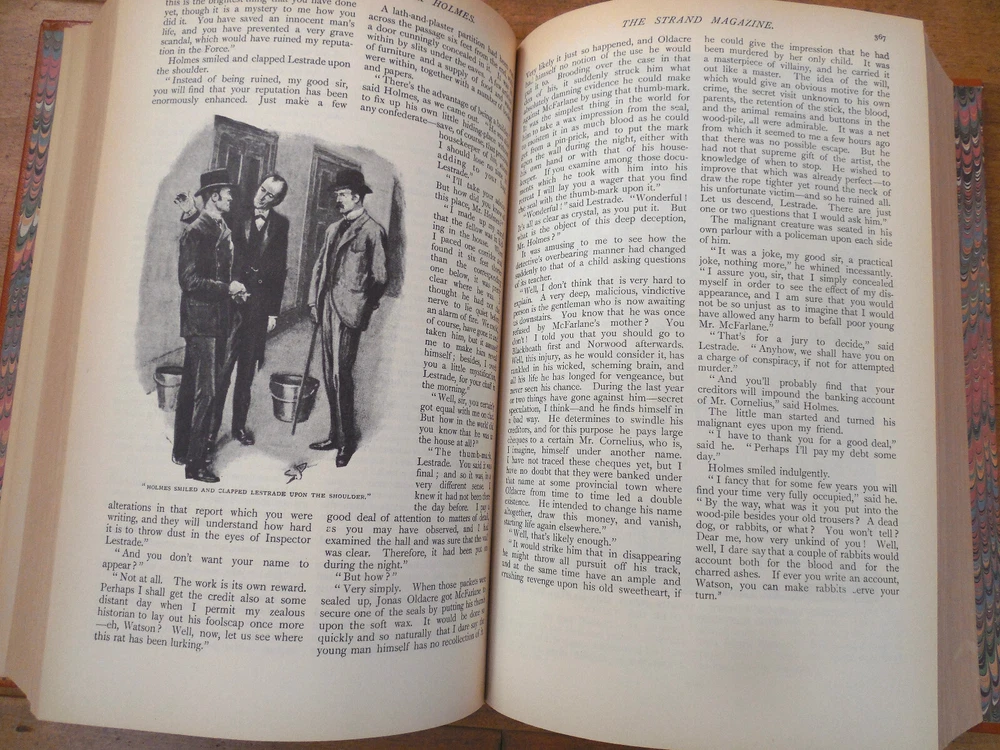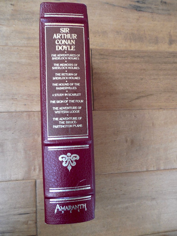 SIR ARTHUR CONAN DOYLE; The Celebrated Cases of Sherlock Holmes. The books has two faults. One is the crease in the leather on the front cover and some spots on the lower edge of the pages. Otherwise it is very clean, excellent condition through out. 808 pages.